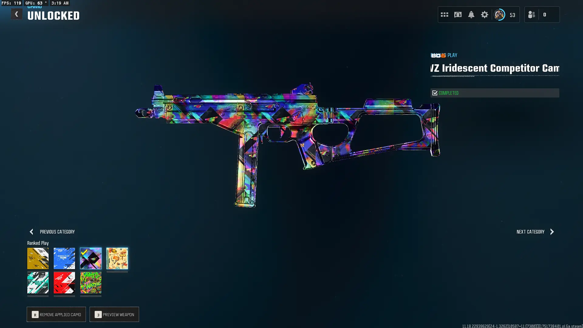 🦅 WZ4 Rebirth 🦅 Iridescent Rank SR 10009 S5 ⭐ ranked ops 🎯 Full Access 🌠 Linkable to: Steam, Battle.net, PSN, Xbox 🌟 Warzone Resurgence Rebirth Iridescent 🌟 Warzone 4 iri #yt54nw