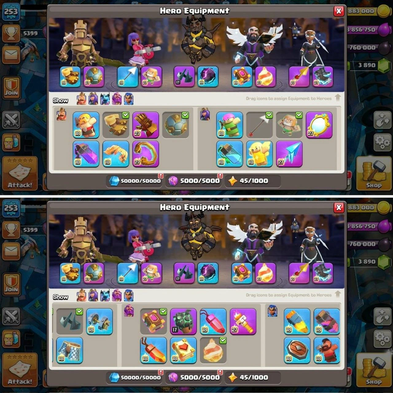 ♻️ 30 EQUIPMENTS MAX ♻️ TH 17 MAX FULL ♻️ 10 EPIC MAX ♻️ 12x SCENERIES ♻️ 5 HEROES MAX ♻️ HERO SKINS ♻️ BH MAX ♻️ STACKED ♻️ INSTANT EMAIL ACCESS ♻️ S09