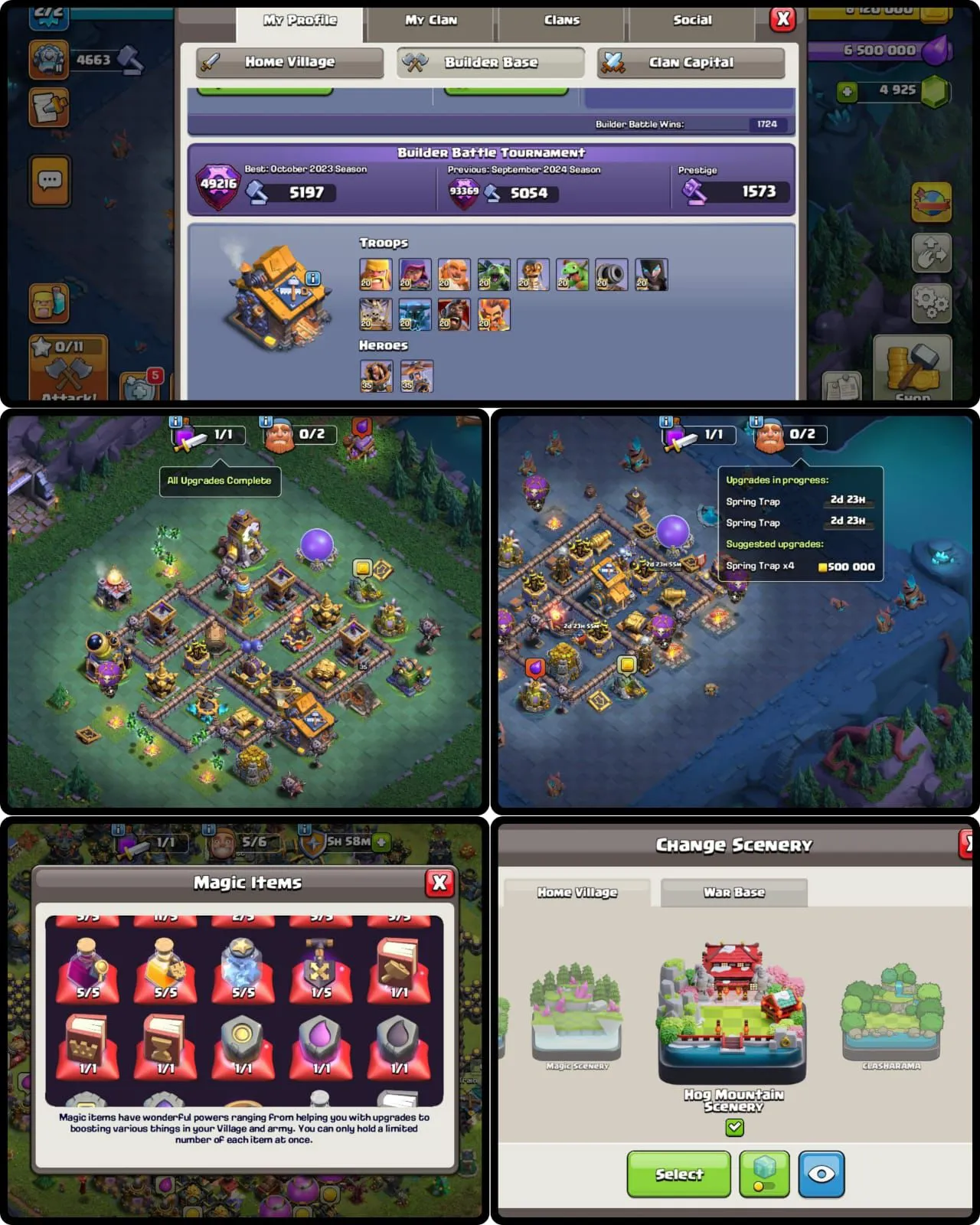 8 MAX EPIC EQUIPMENTS TH 17 🔥 HOG MOUNTAIN SCENERY TH17 🔥 25 SKINS TOWNHALL 17 🔥 S09