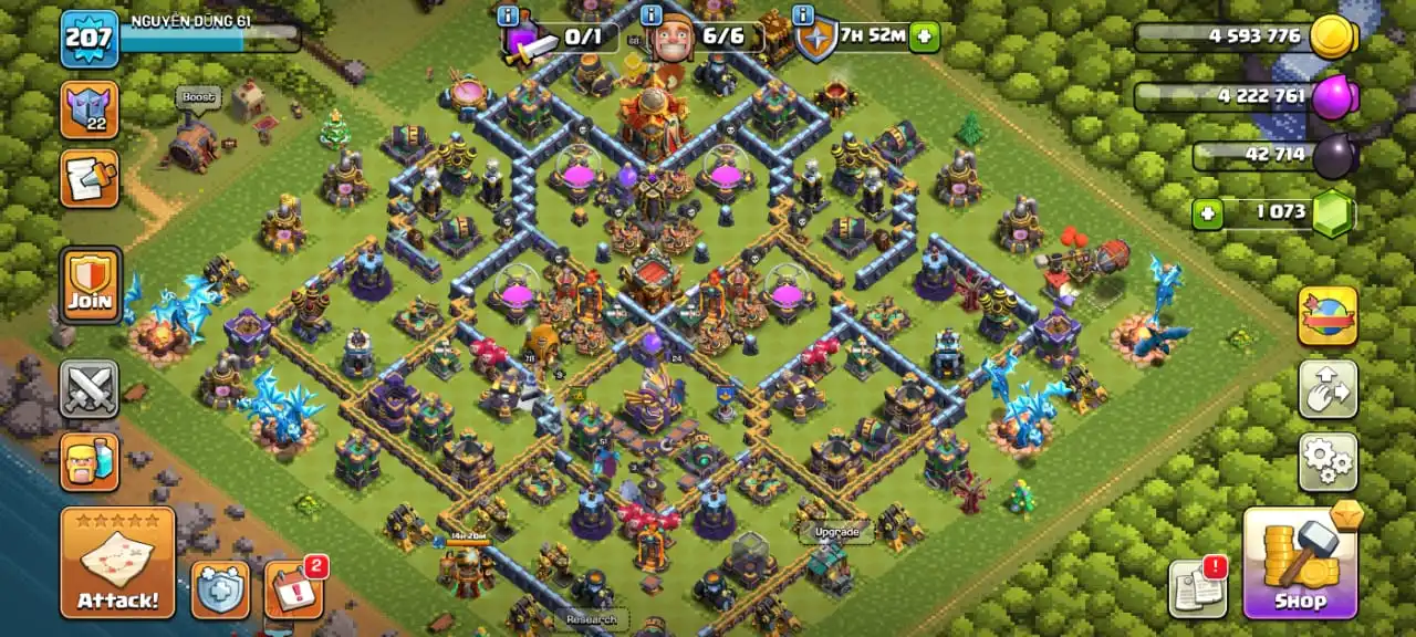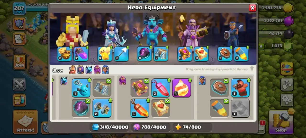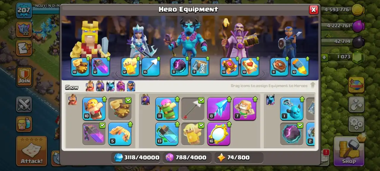BEST TH 16 Near Max【Ready for War】⚡GOD ALL HRO LEVEL⚡207 XP⚡GOOD Profile⚡Good Eqipments Level⚡NC 1500 GEMS⚡YACOC100