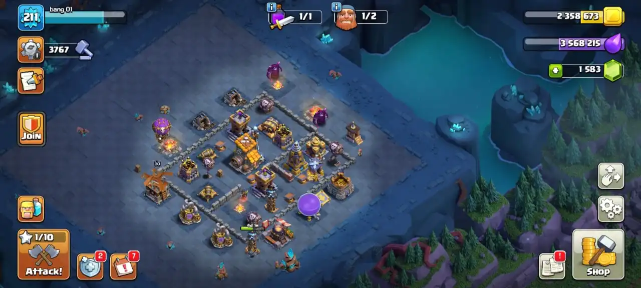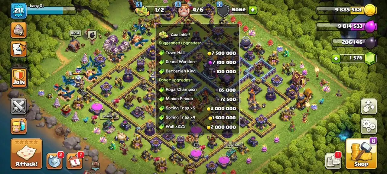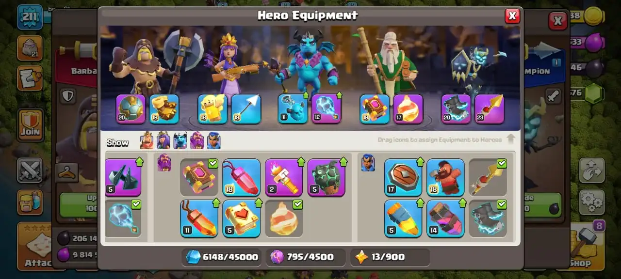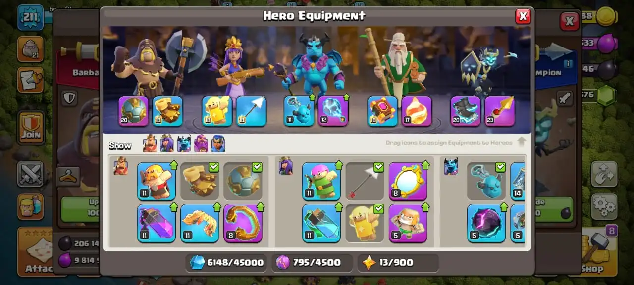 Cheap🔥TH 15 max defense🔥high heroes level 82/87/59/57/35☠️11 epic equipment⚒️6 builder’s✅cn on✅7 heroes skin