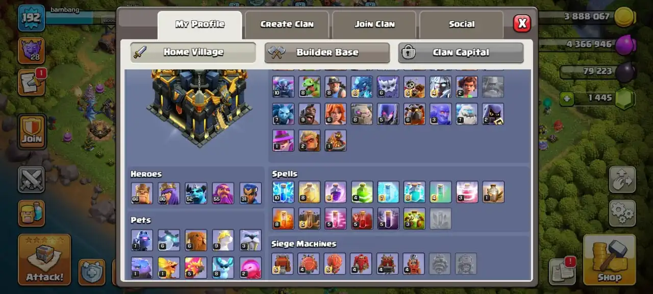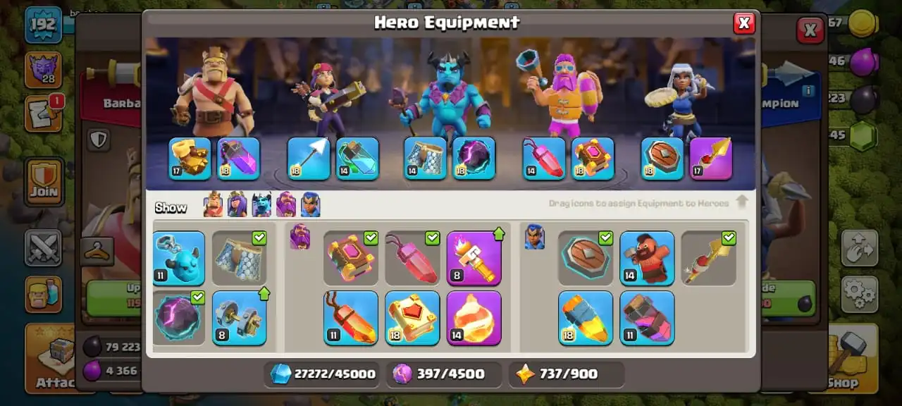 Donation acc✅TH 17 ready to war🔥heroes level 66/80/52/55/31☠️4 epic equipment✅free name change✅7 heroes skin