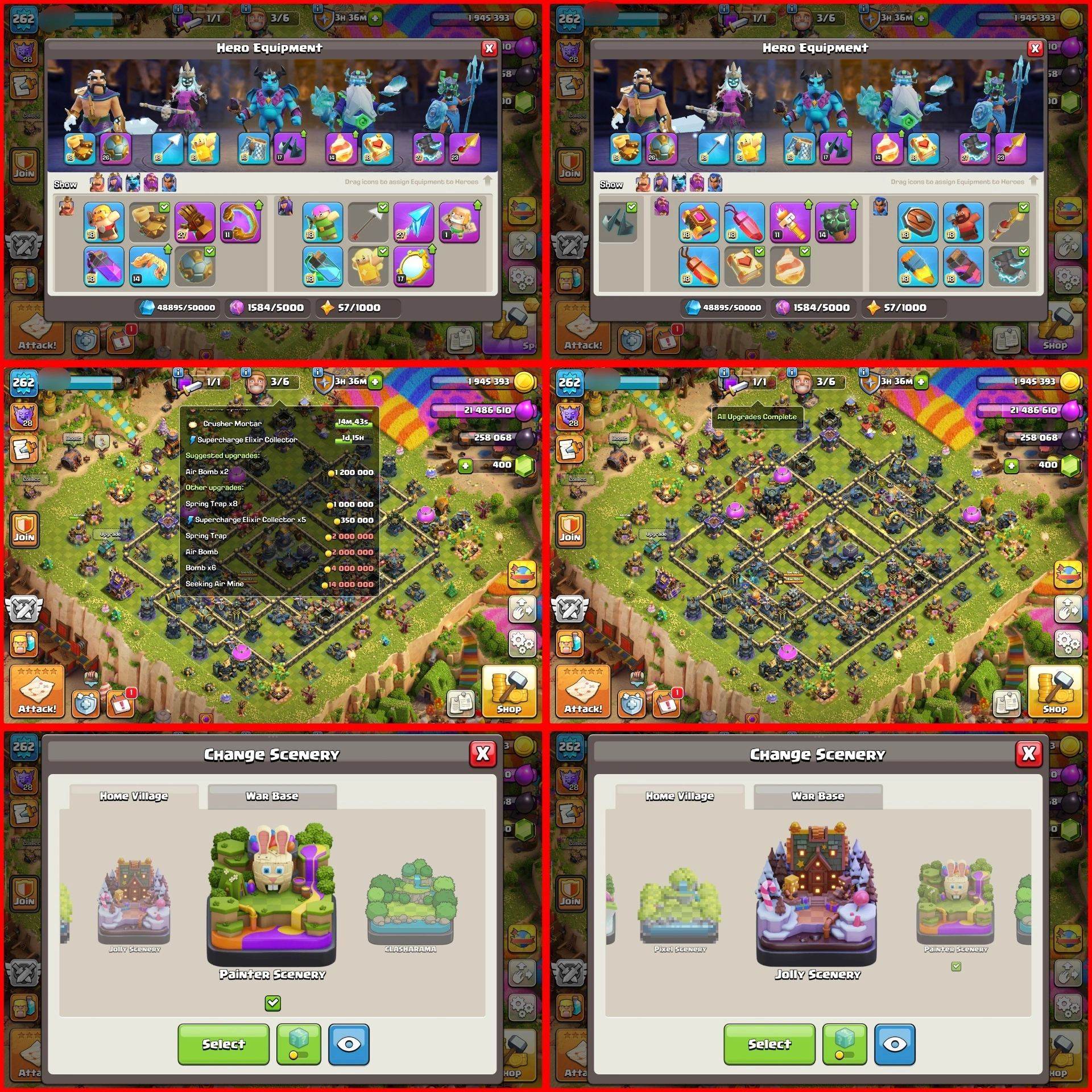 GODLY TH17 MAX I'D w/ PAINTER & JOLLY SCENERY | Max Heroes, Walls & Defenses | Piled Hero Skins { 12/13 Epics Avbl } | BH10 MAX + 1K NC | RB383