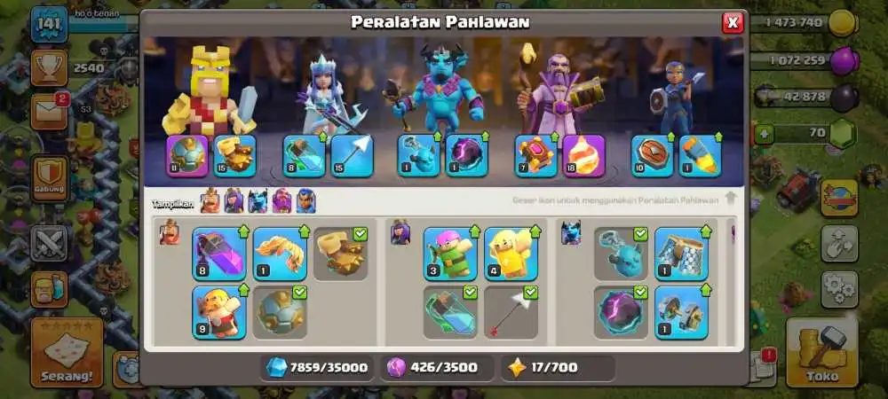 IT 652⚡TH 13 ALL MAX EX HERO AND WALL⚡LVL 141🛡KING 53🛡QUEEN 54🛡WARDEN 31🛡RC 16🛡MANY MAGIC STUFF+MANY LEAGUAE POIN🛡SAFE ACCOUNT⚡