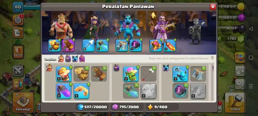 IT 755⚡TH 13 MIX BLUE WALL AND 1.7K GEMS⚡LVL 80🛡KING 16🛡QUEEN 25🛡WARDEN 12🛡MANY MAGIC STUFF+MANY LEAGUAE POIN🛡SAFE ACCOUNT⚡