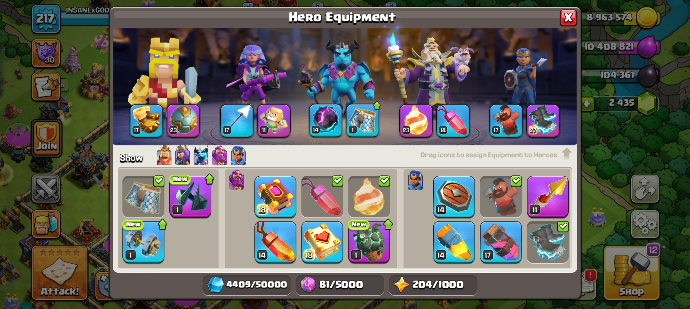 🔥 MAXED ELECTRO BOOTS ✨ 9 EPIC EQUIPMENTS 🔥 OP TH 17 ACC 🫶 GOOD DEFENCE 🔥 HEROS 77-93-71-70-38 👑 1400+ WAR STAR ⭐ 1K GEMS NC 🔥 LEGENDARY WARDEN SKIN ✨ MAGIC ITEMS 💫 INSTANT DELIVERY 🚚