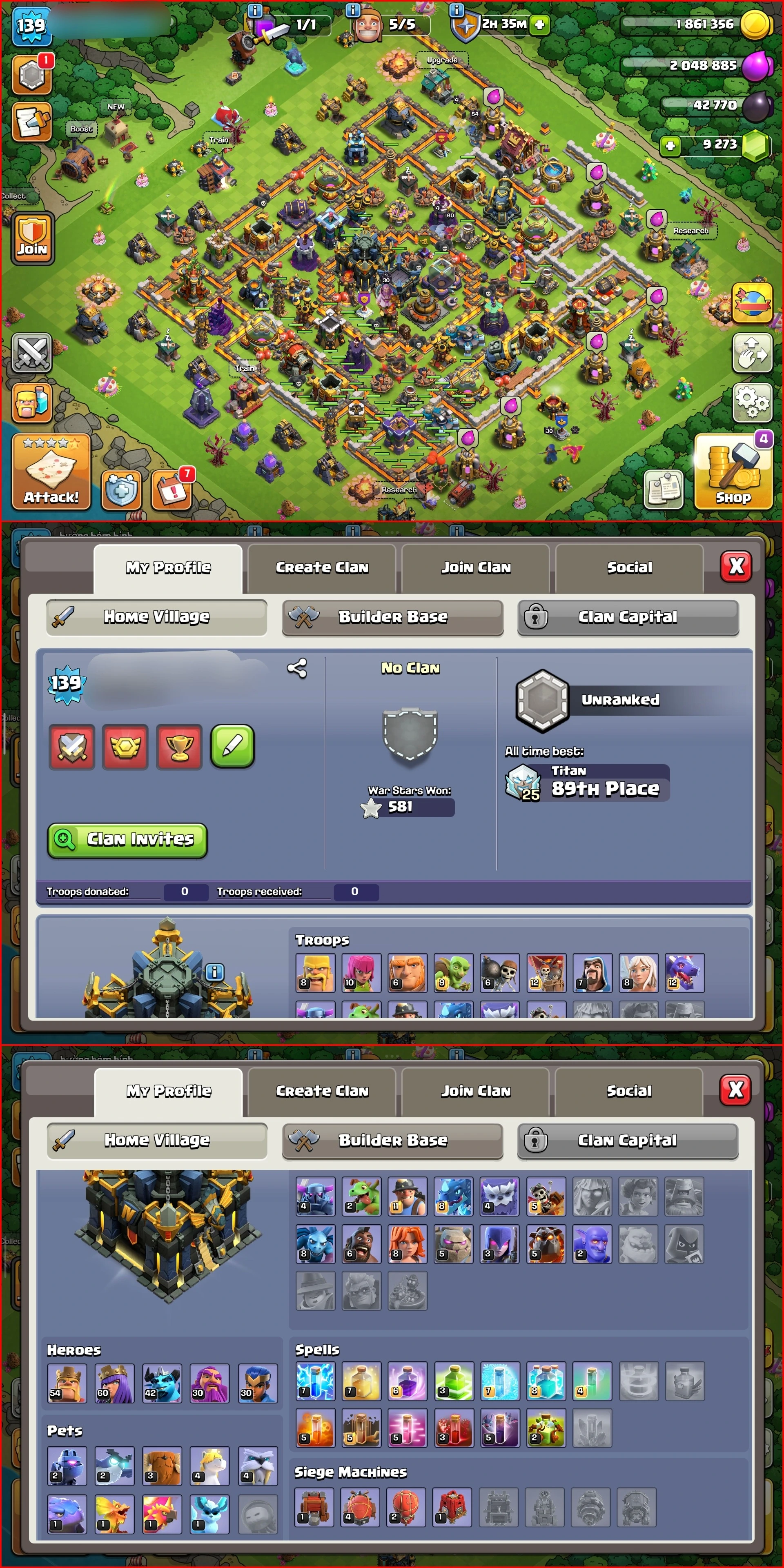 POWERMAX TH17 DONATION I'D w/ 9.2K+ GEMS | 54/60/42/30/30 | Sturdy Troops & Abilities | 1K NC | WORTHY I'D | RB435