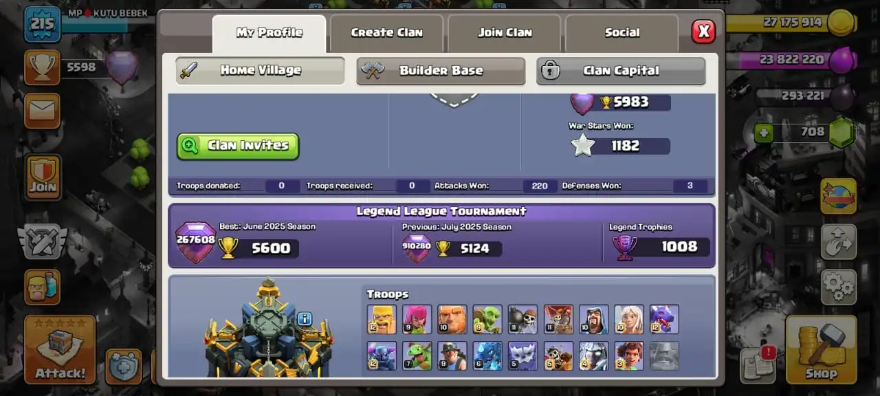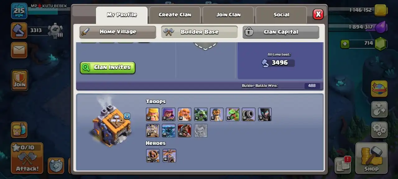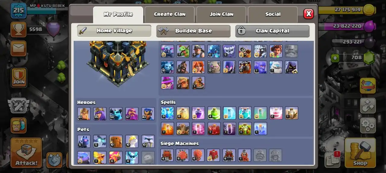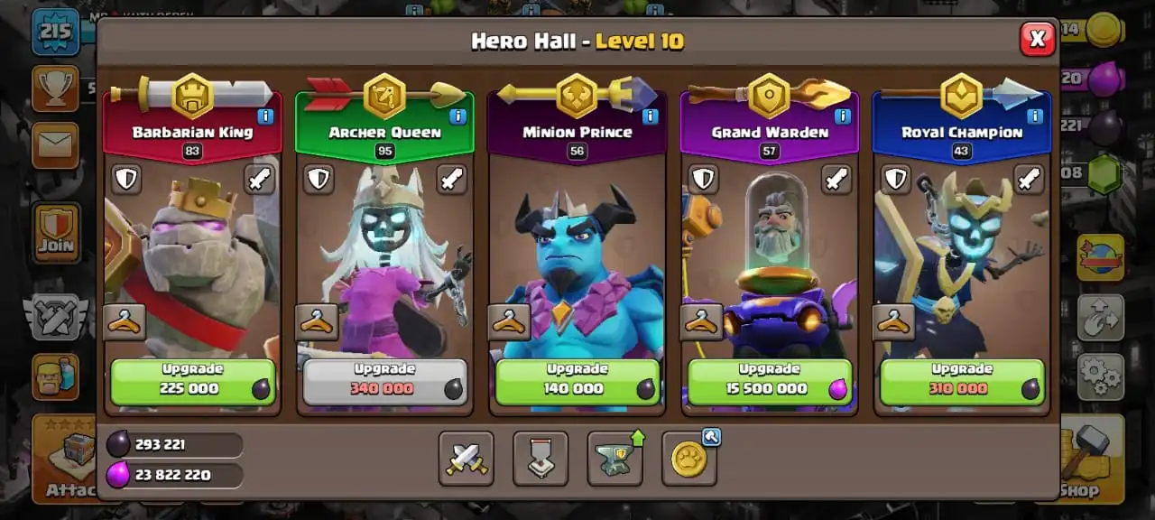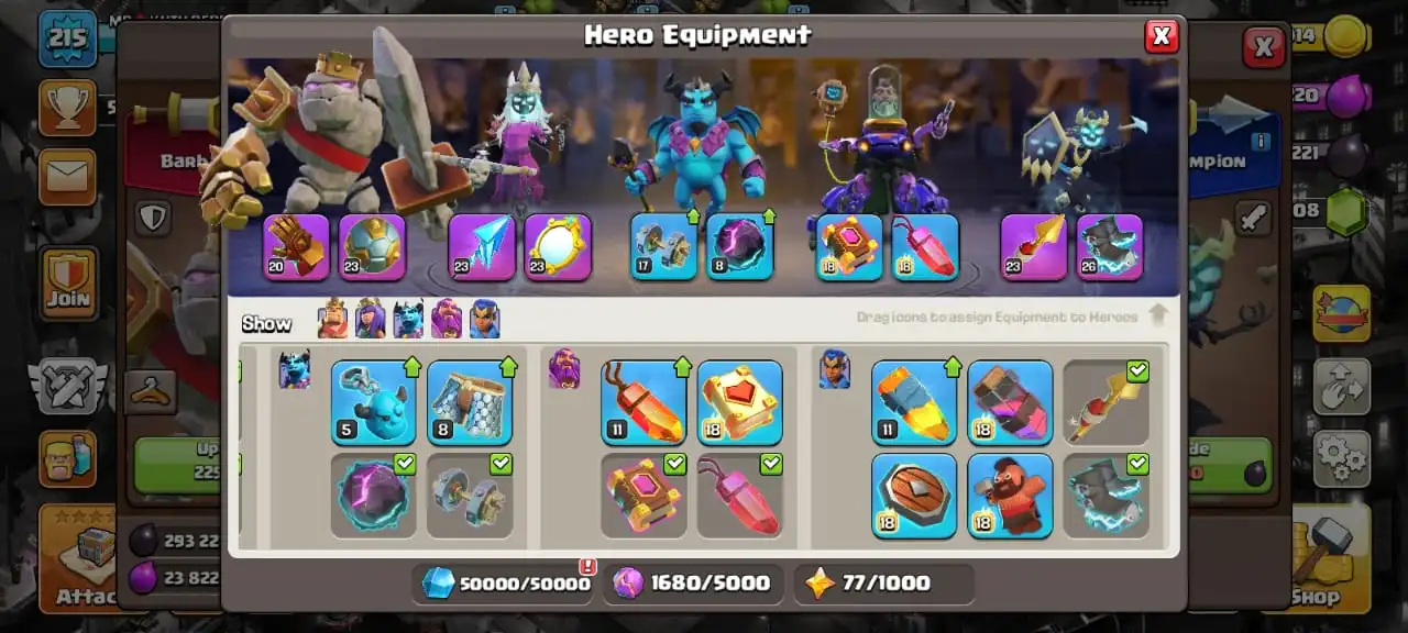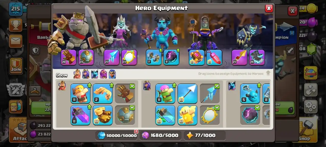 Sale🔥TH 17 almost max🔥high heroes level 83/95/56/57/43☠️6 epic equipment✅3 scenery and 11 heroes skin⚒️6 builder’s