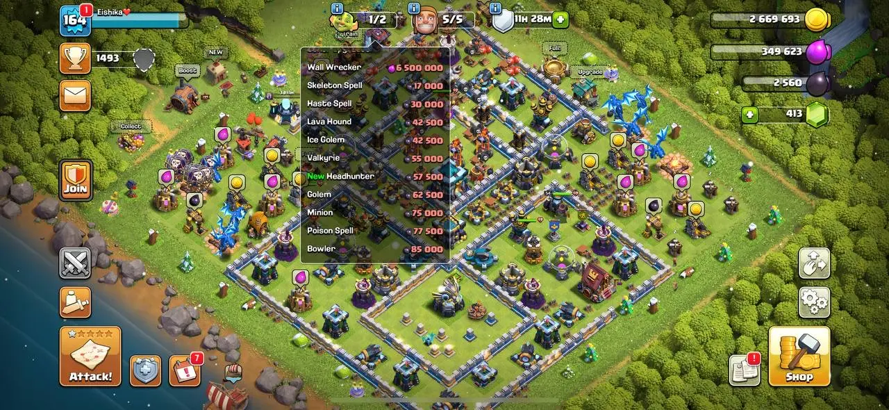 SEMI MAX TH13 ⭐️ ALMOST MAX LAB ⭐️ GOOD HEROES ⭐️ GOOD DEFENCE ⭐️ LEGEND TOUCHED ⭐️ 164 EXP ⭐️ MANY MAGIC ITEMS ⭐️ 100+ MEDALS ⭐️ NAME CHANGE 1.5k GEMS