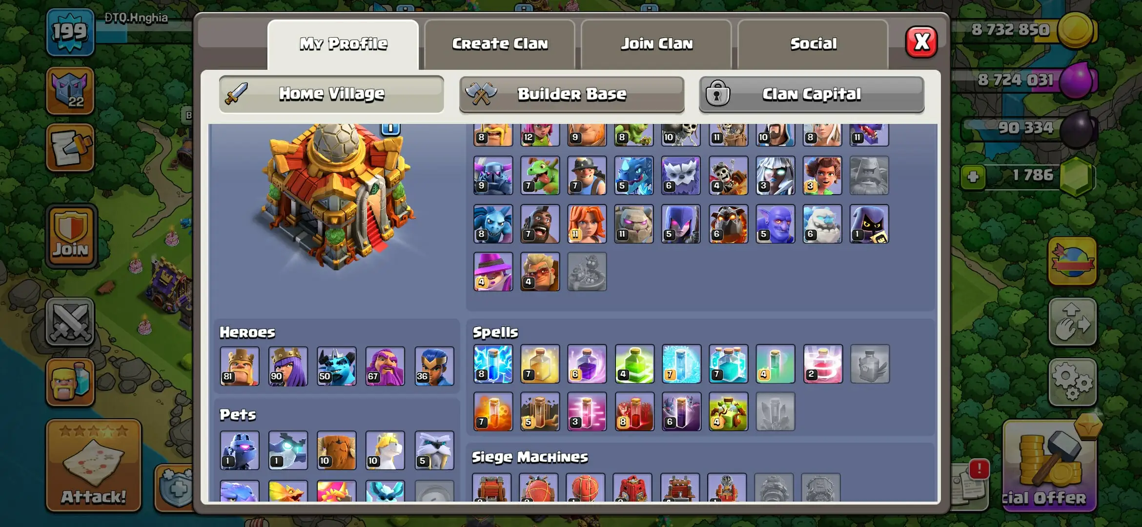 TH 16 Best 🌟Heroes ⸱ 80/90/50/67/36🔰 3 Epic Max type💥 GG-26/Fa-26/Eb- 26💥 Almost max defence 💥 1.5k Nc 🏆 Instant Delivery ( 95)