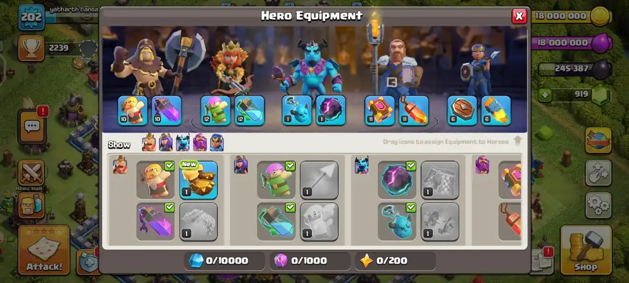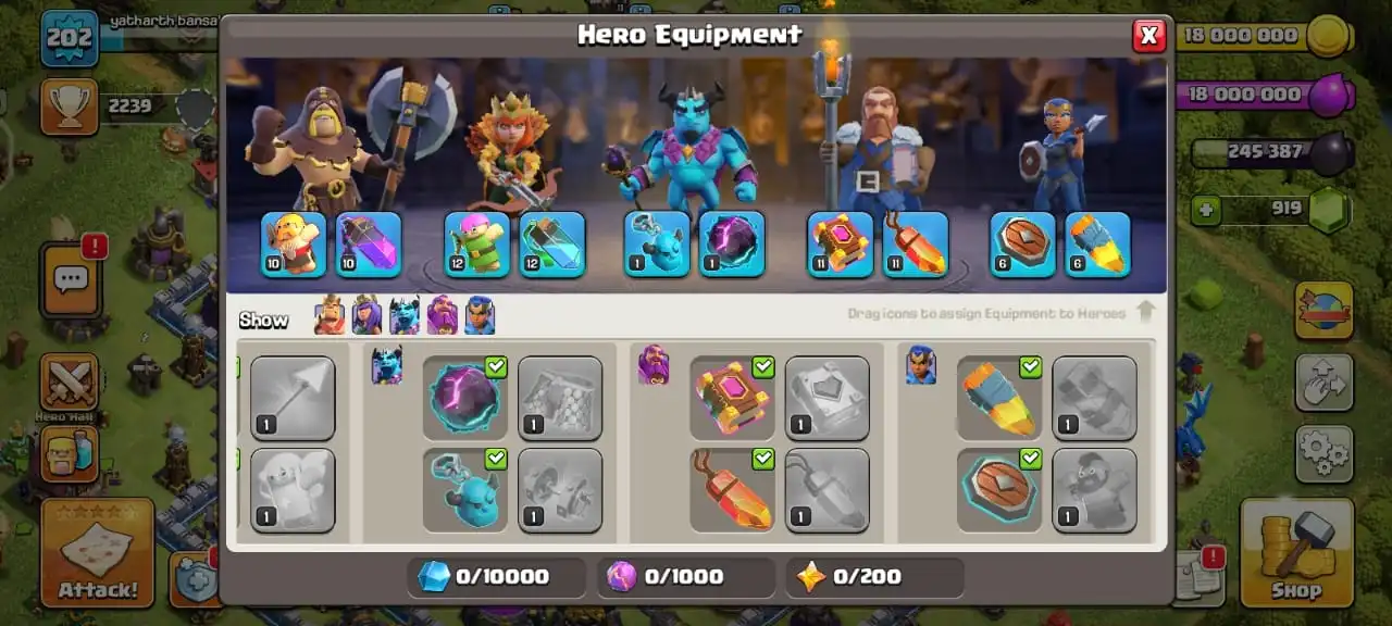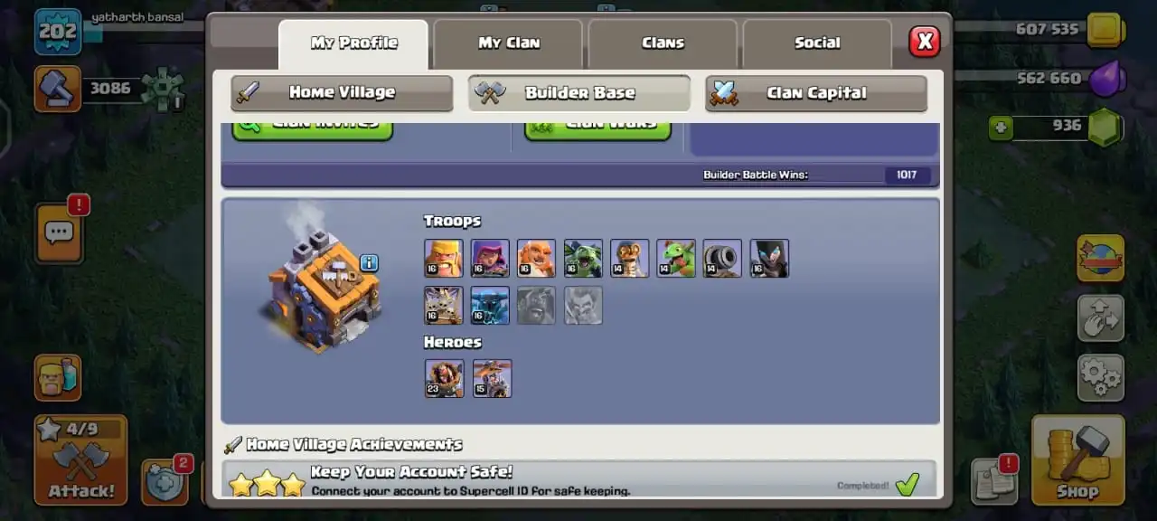 TH13 Best Seller 🏆 5 Hero Skins 🎭 Heroes BK61/AQ70/GW40/MP41/RC11 🛡️ 400+ CWL Medals 🎖️ Instant Delivery ⚡