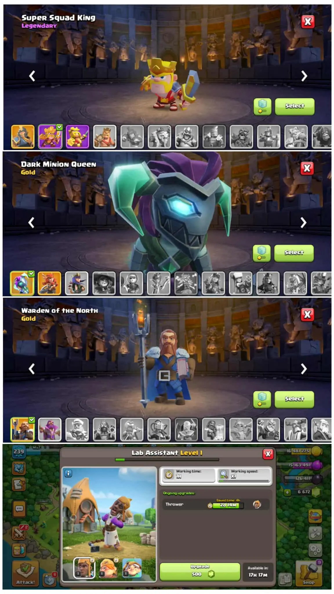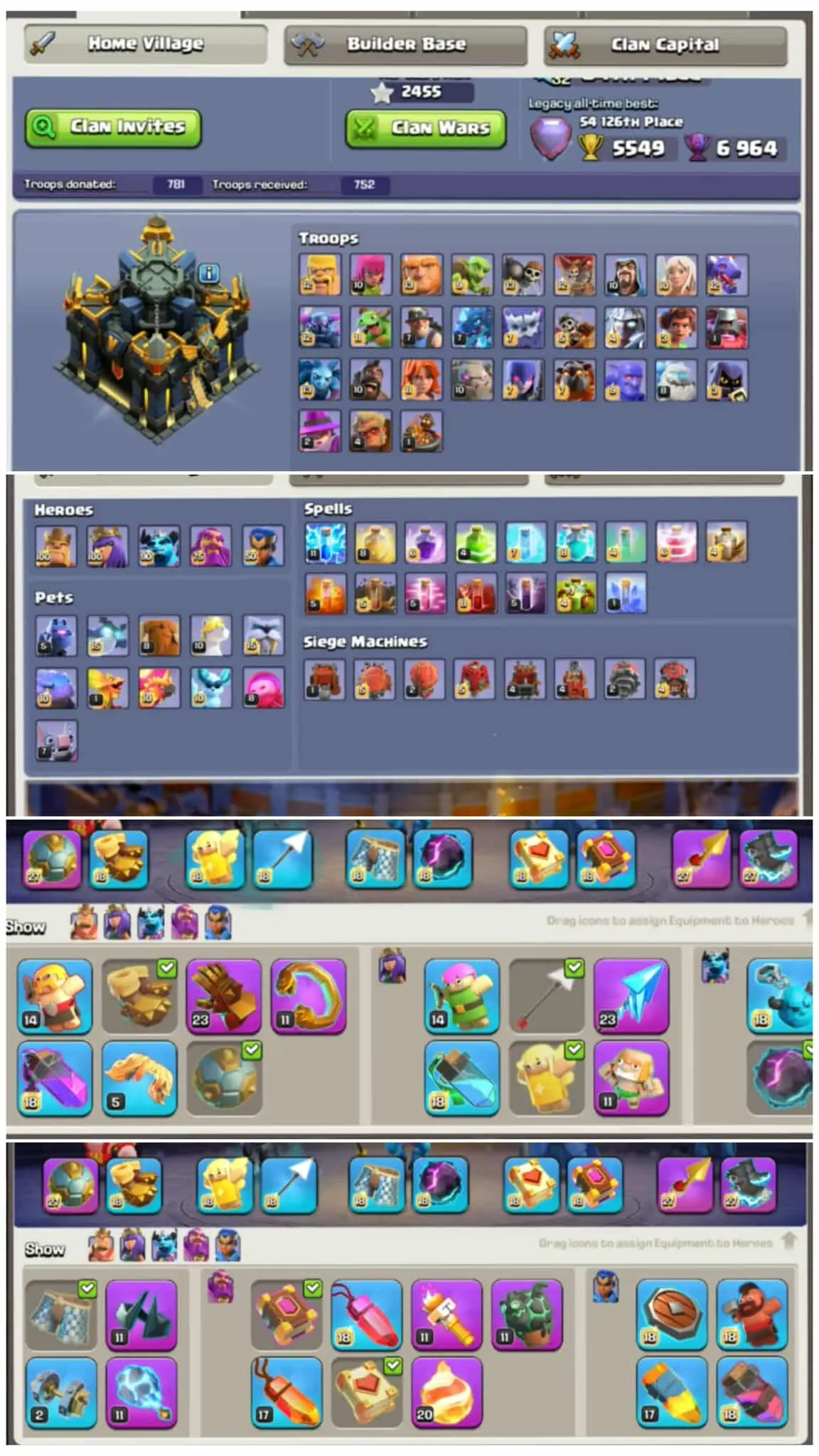 Th17 100% Max Account【5 Hero Max】【11 Epic】Heros 100-100-90-75-50➤Troops Spell Machine Max➤7000+ Gems➤Justice+Spooky Scenery➤Magic Item
