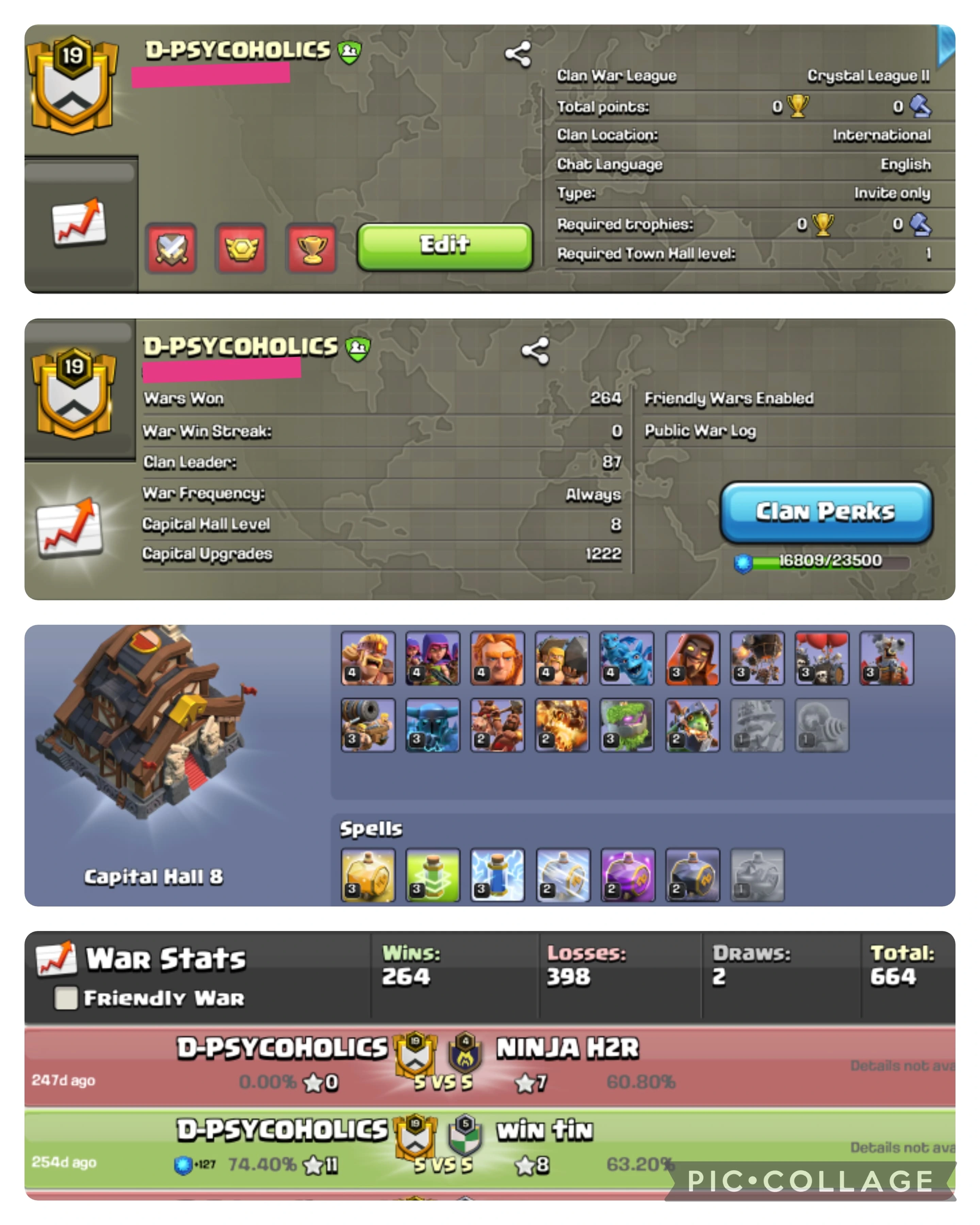 😁CRYSTAL 2 + CC 8 🌿 D-PSYCHOOLICS 💀 LEVEL : 19.9 😈WARLOG W-L-D : 264-398-2 🫶