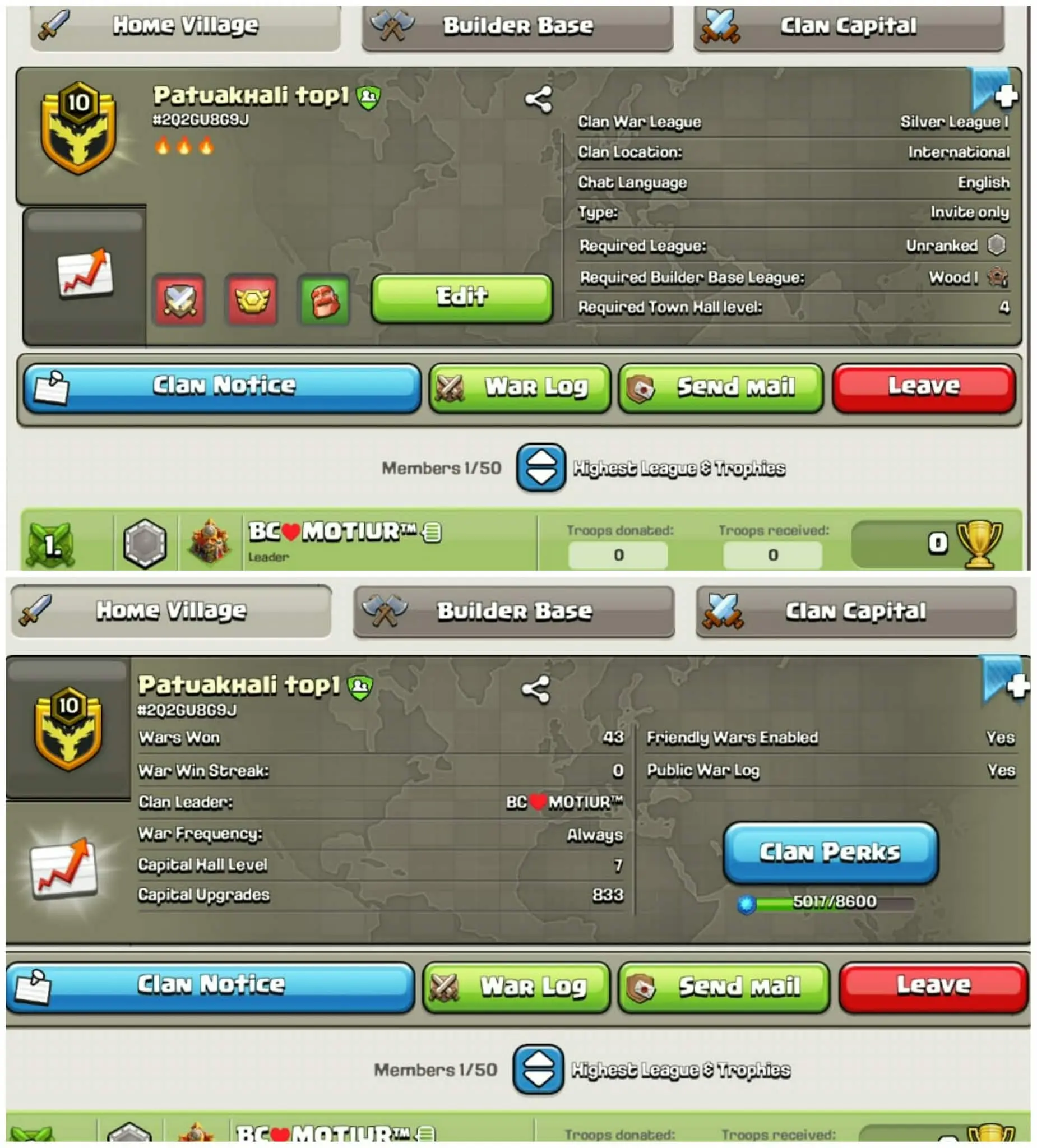 Master Leauge-2➤➤Clan Name: Supercell➤➤Level-2➤➤0 Win 0 Loss Clan