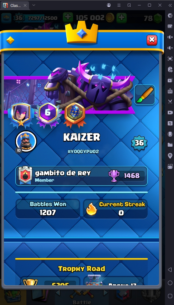 6205 TROPHY 🏆 36 LVL 💯 KT 12 👑 113 CARDS ♦️ EMOTE 25 🎭 #Y0QGYPU02 ⸱ TAG ACCOUNT ♥️