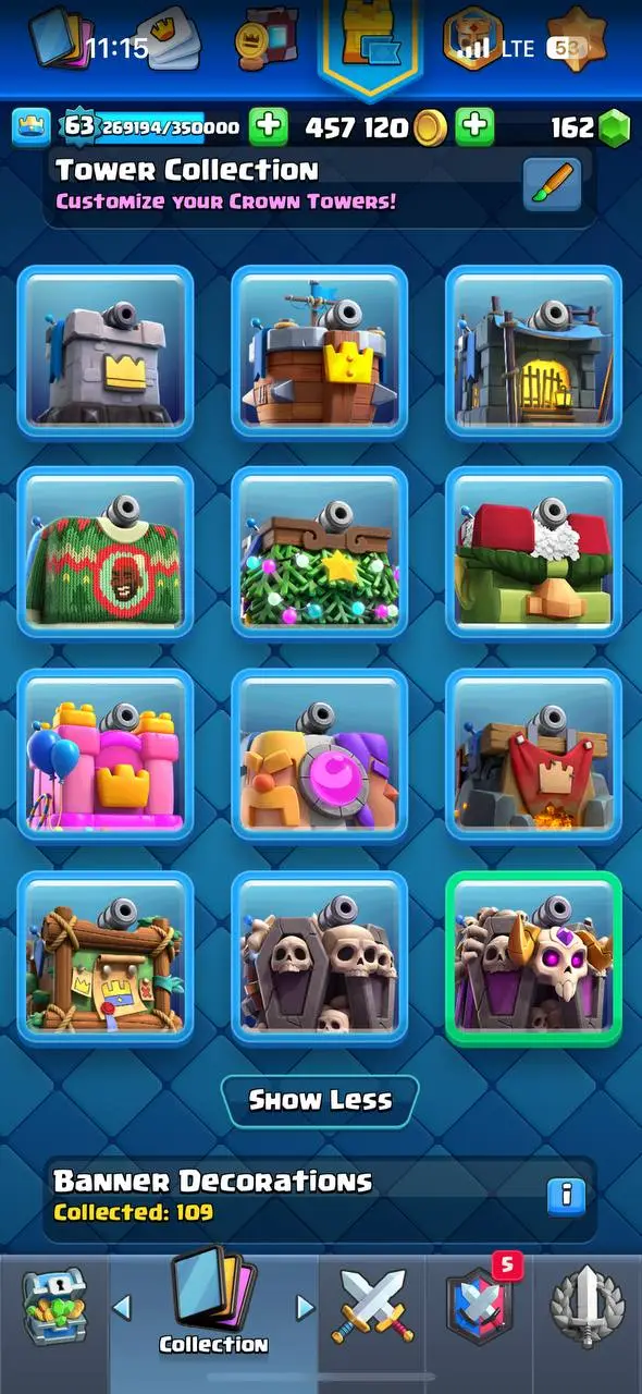 🚨 64 XP 🥶 110 CARD MAX 👿 41 ELITE 🙀 20 EVOLUTION 🤩 11 TOWER SKIN 💀 112 RARE EMOTE 😻 11000 TROPHIES 🏆 INSTANT DELIVERY 🚚