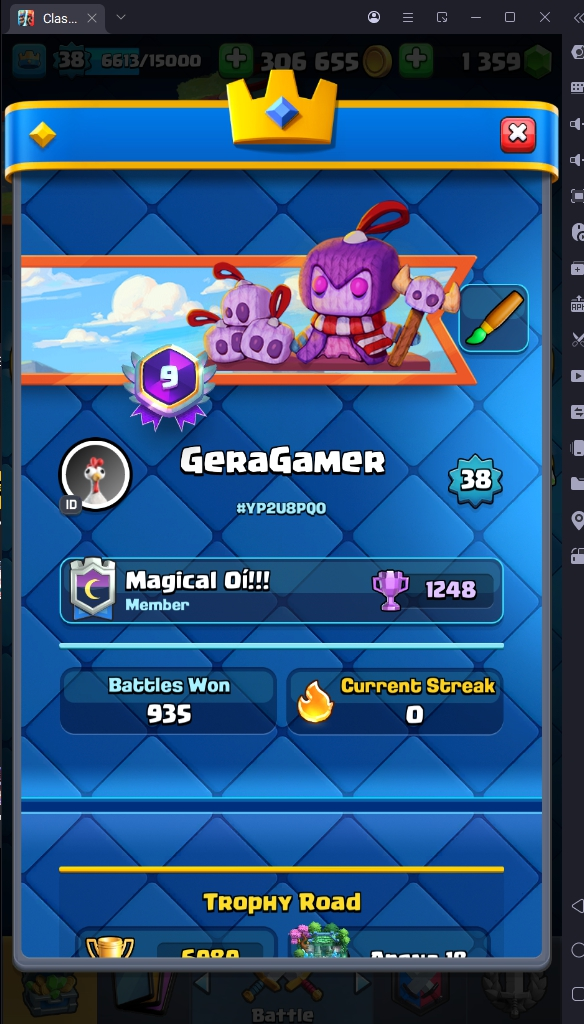 6989 TROPHY 🏆 38 LVL 💯 KT 13 👑 115 CARDS ♦️ EMOTE 26 🎭 #YP2U8PQ0 ⸱ TAG ACCOUNT ♥️