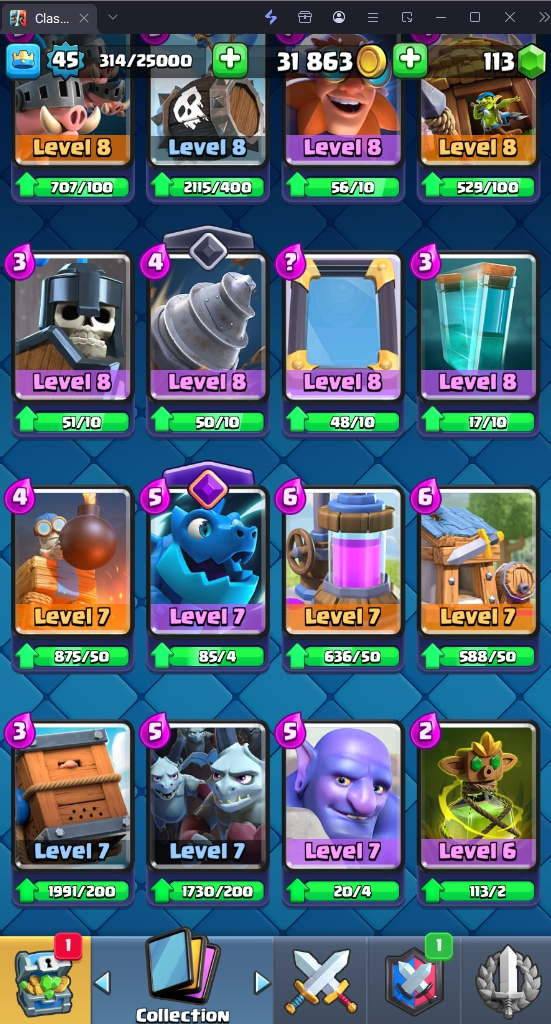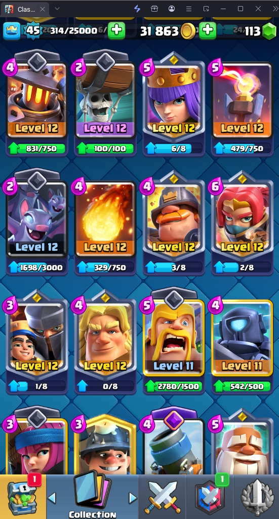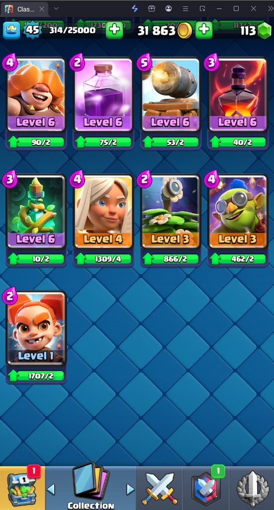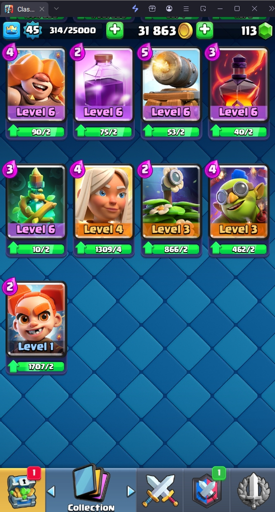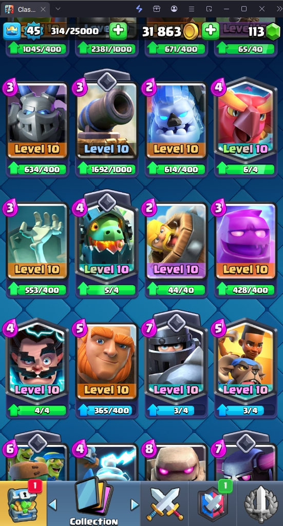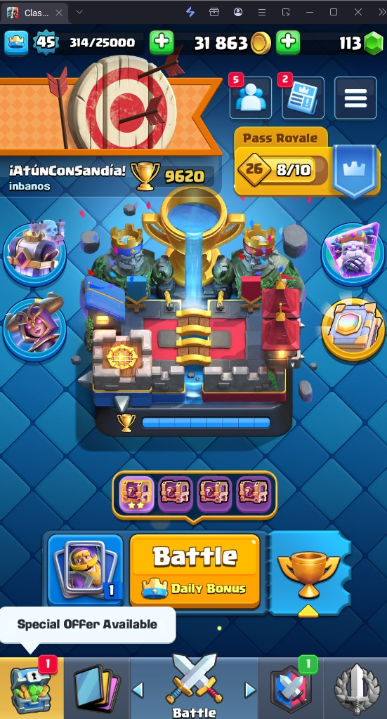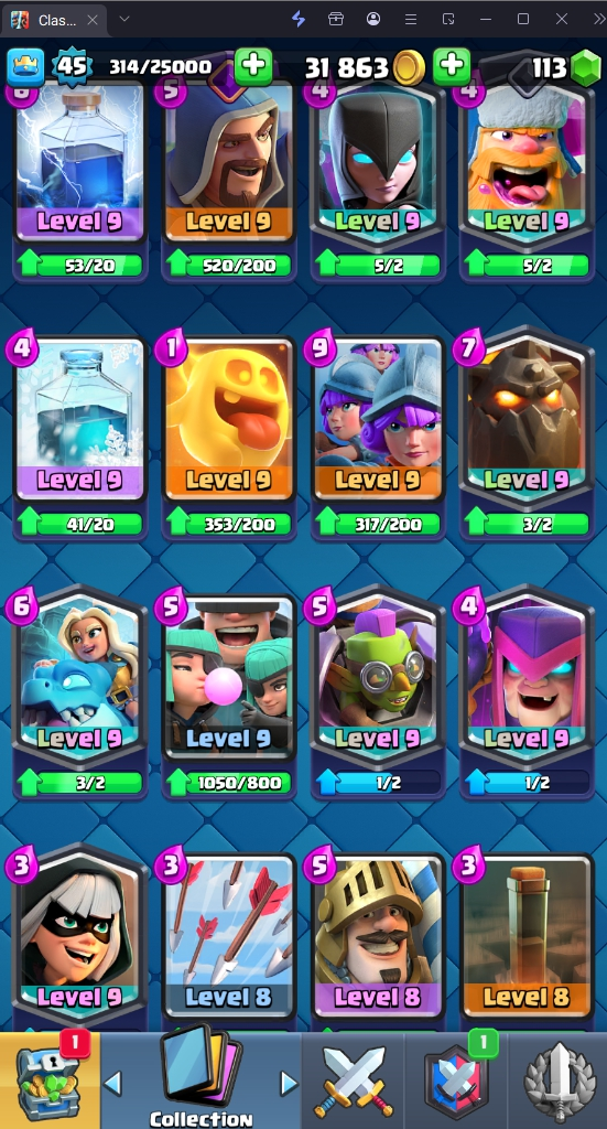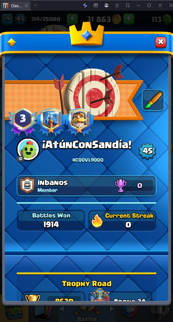 9620 TROPHY 🏆 45 LVL 💯 KT 14 👑 121 CARDS ♦️ 4 MAX CARDS 👑 3 ELITE CARDS 🔮 7 EVO 💯 EMOTE 41 🎭 #CQ0VL9QQQ ⸱ TAG ACCOUNT ♥️