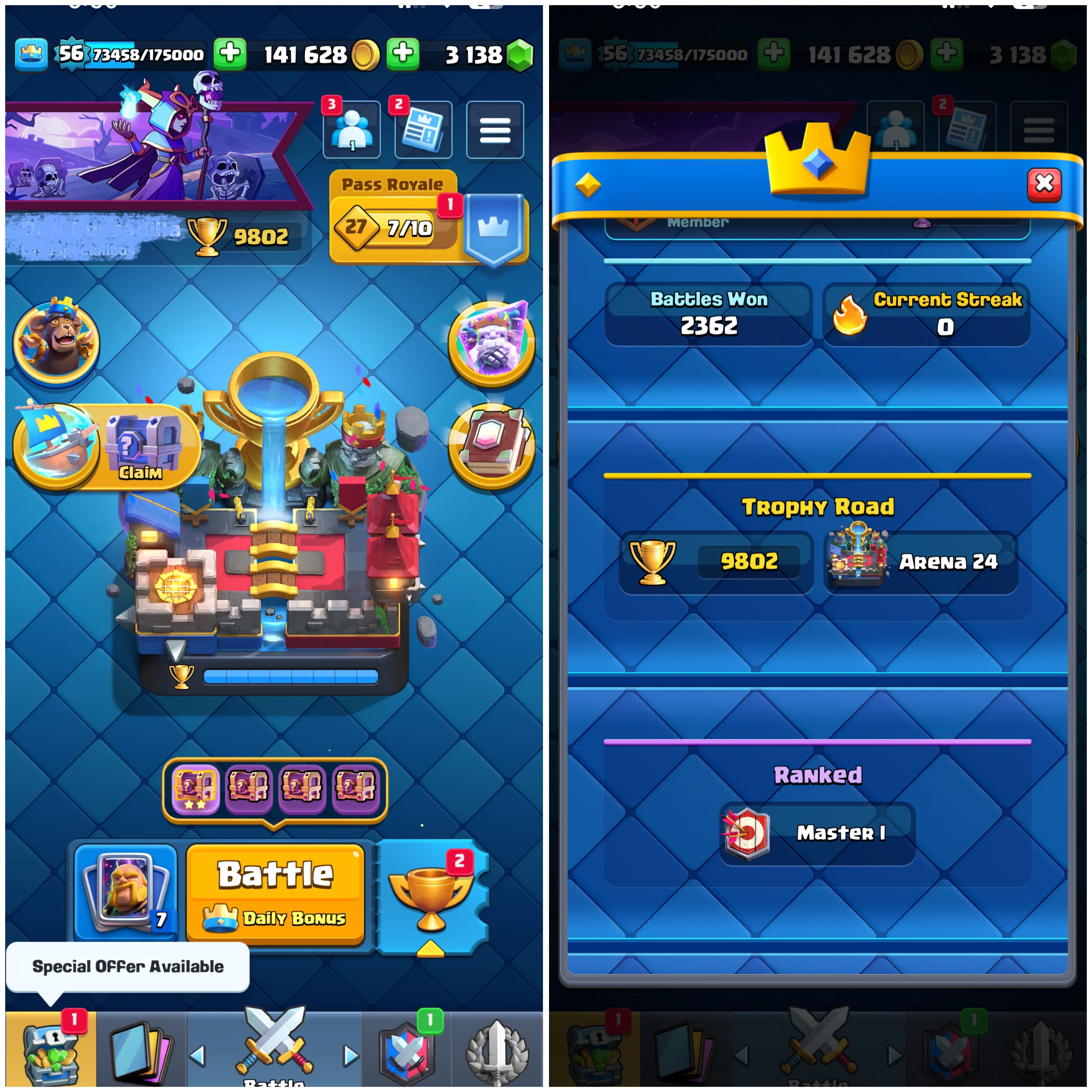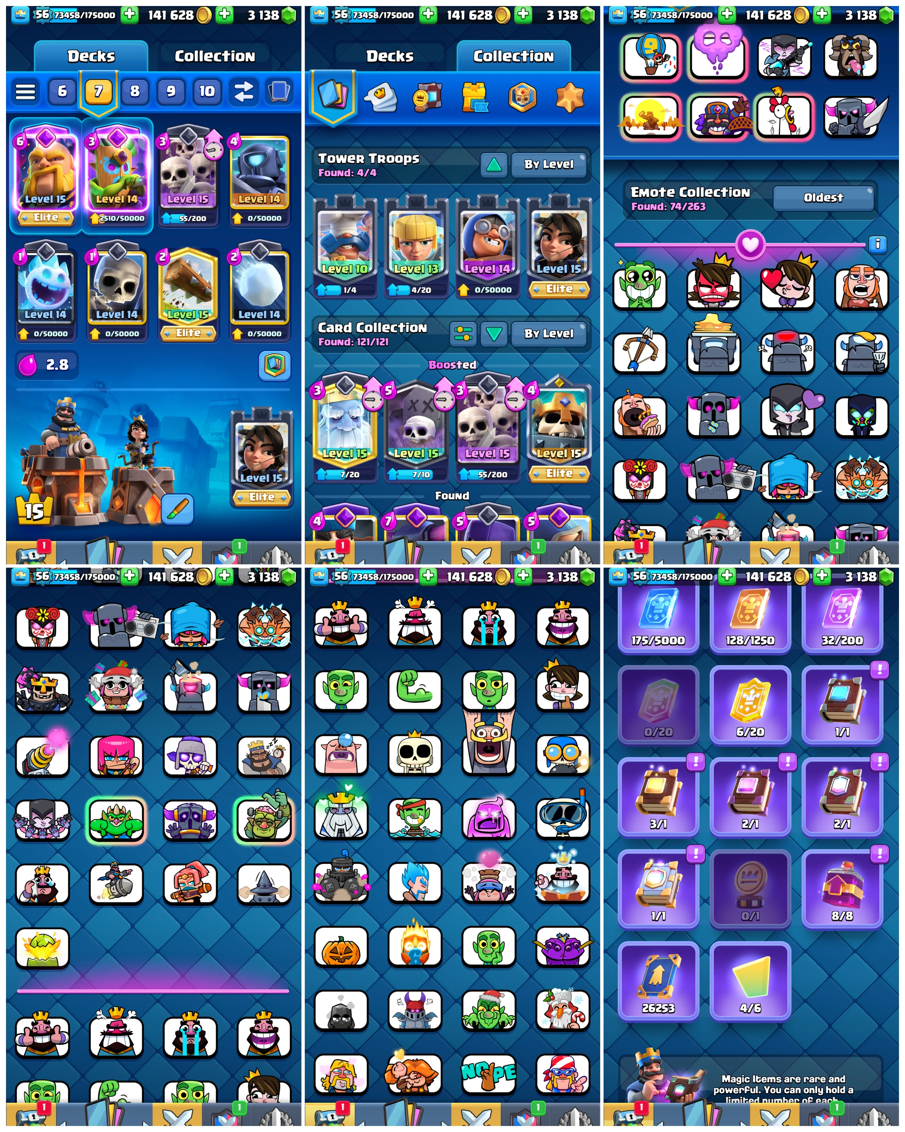 Buy CR Account Get COC & BS Free 🌟 9802 Trophies 🏆| Level 56 🔥 | King Tower 15 👑 | Arena 24 ⚔️ | Emote 74 😎 Cards 121 🚀 Instant Delivery 🚀 Lifetime Access ✅ | #P738