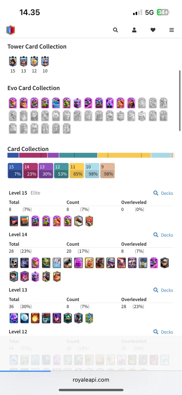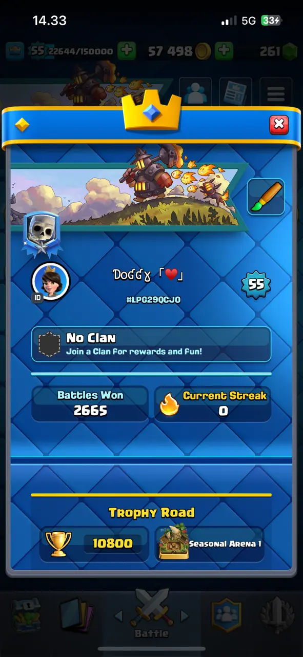 🔥 [-CHEAPEST-] 🔥 CR Lv.55 🔥 5 Years Played 🔥 Arena 1 🔥 10800 Trophies 🔥 KT 15 🔥 12 Evo Card 🔥 28 Max Cards & 8 Elite 🔥 77 Emotes 🔥 3 Tower Skins 🔥 [F2413] 🔥