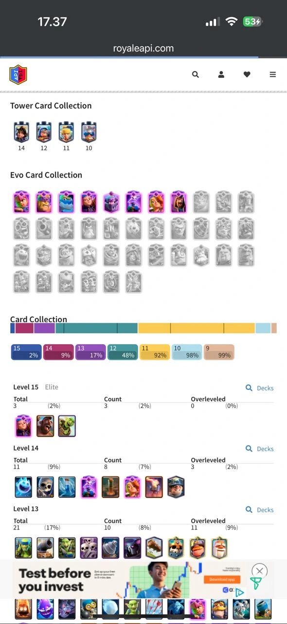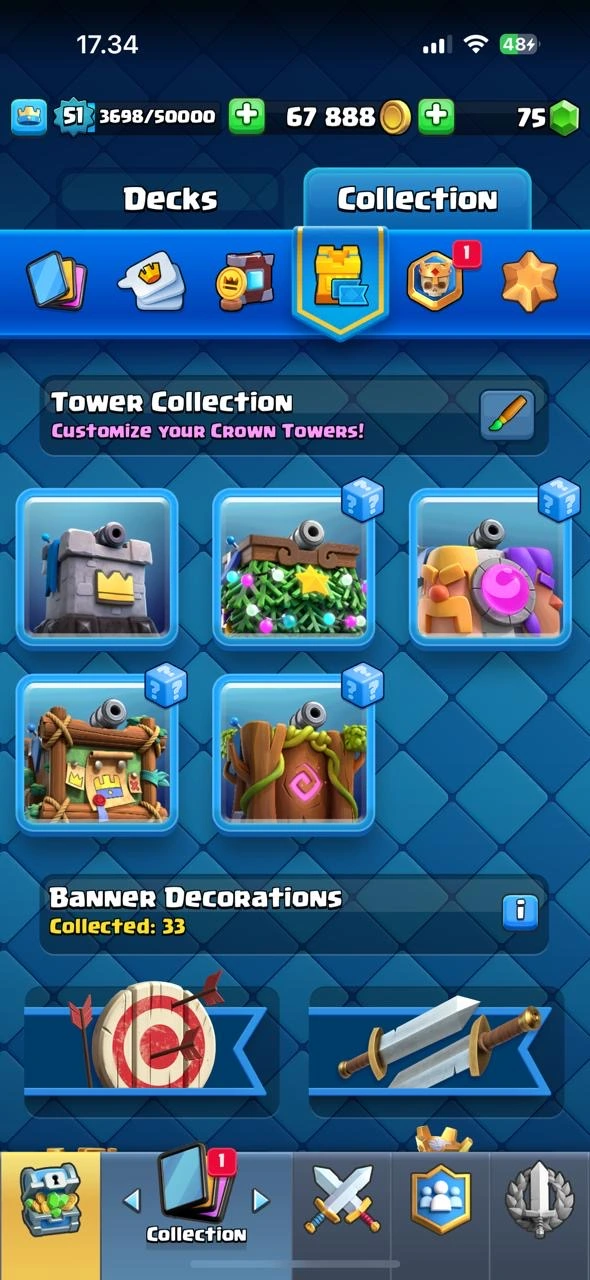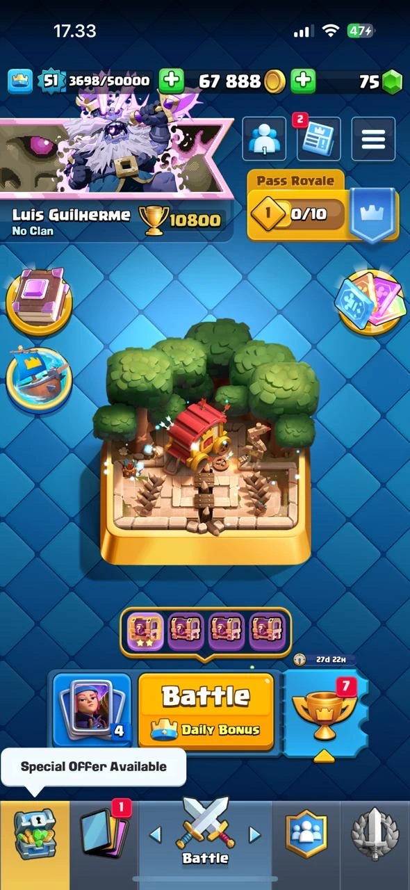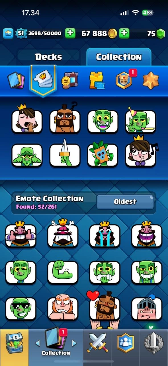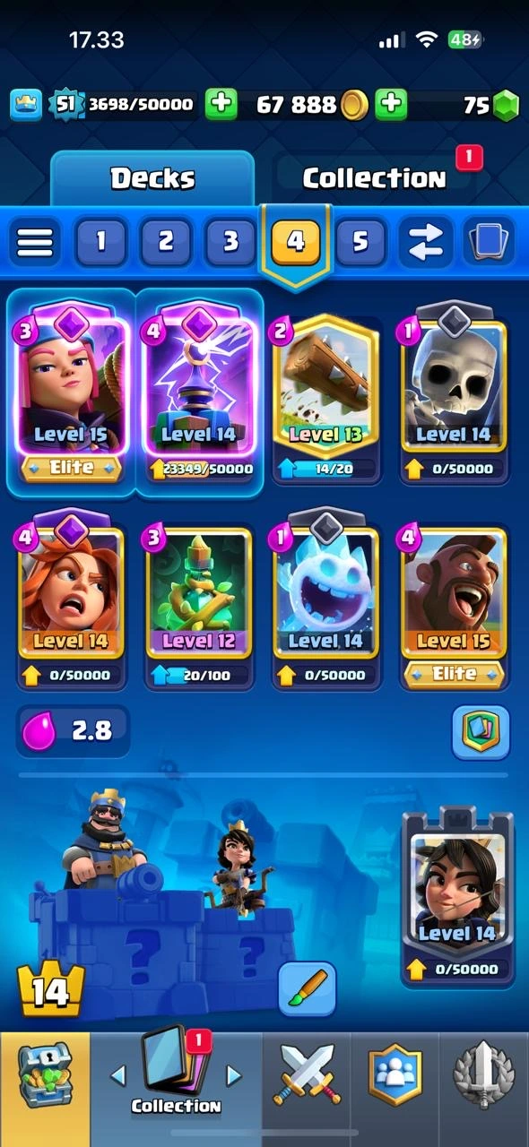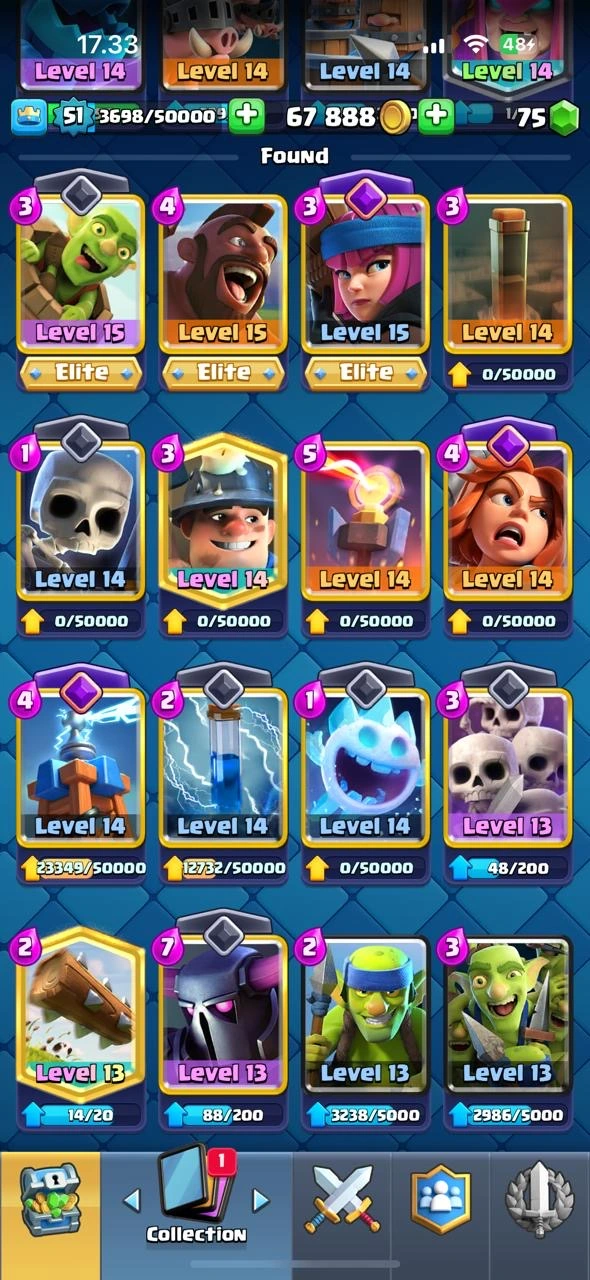 CR XP 51🔥KT14🔥Cn Free🔥3 Elite🔥12 Max Card🔥8 Evo🔥10800 Trophies🔥52 Emotes🔥4 Skins Tower🔥Acces Full🔥Cheapest and Safe Account