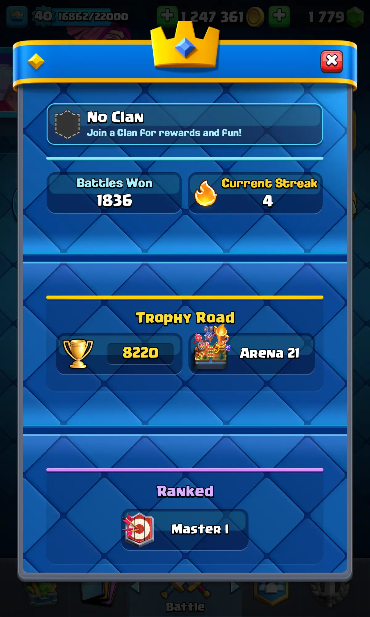 ⚡🔥 LEGENDARY DEAL 👑🚀 | 8220🏆 | KT 14⚔️ | 🪬1 ELITES | 🌙ARENA 21 | 🫶🏼LEVEL 40 | 🎭24 EMOTES | 💫0 MAX CARDS | 🏆MASTER RANK | ✨FULL ESS | ⚡INSTANT DELIVERY🚚
