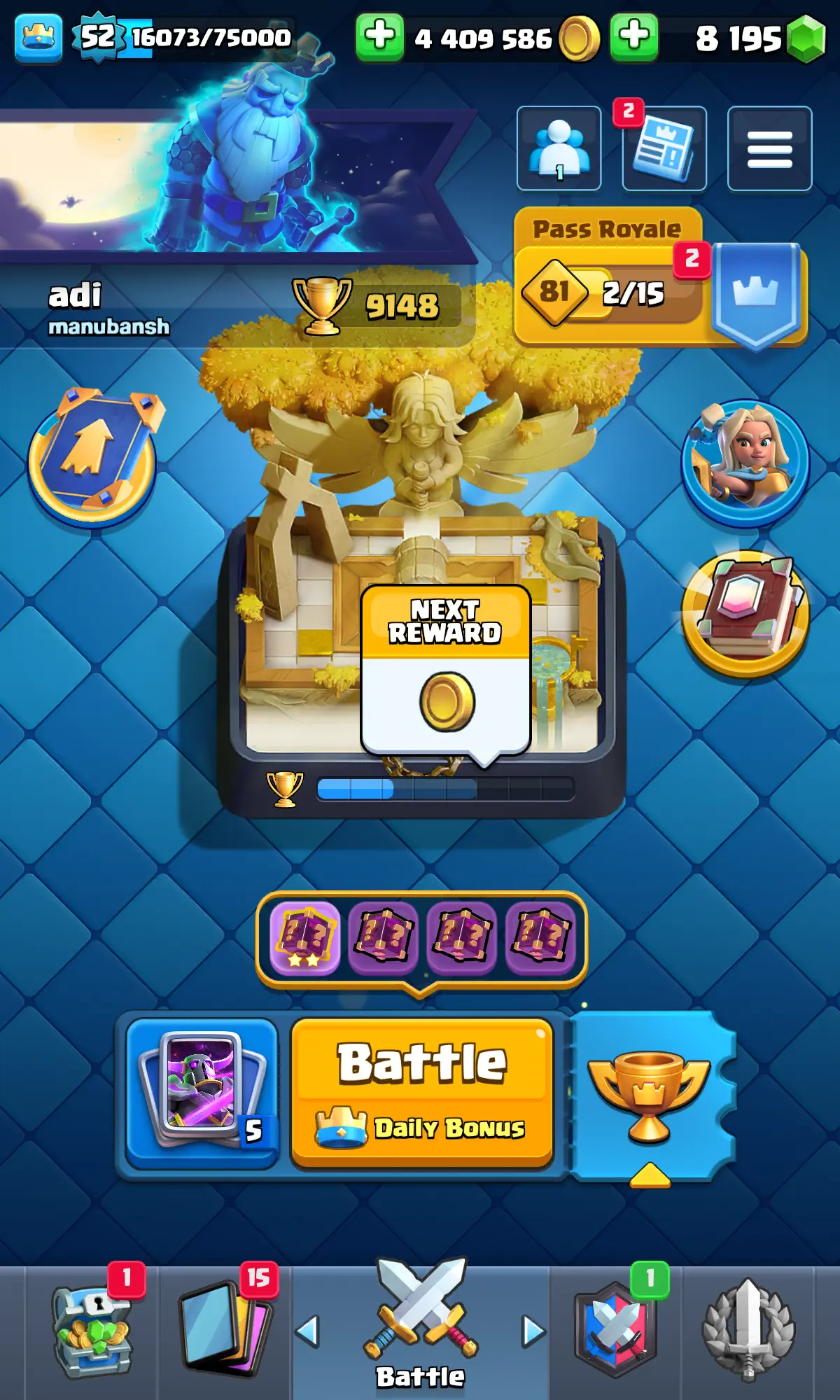 🌠 MYTHIC ROYALE BEAST 🌠 | 9148🏆 KT14⚡ | 🌙 ARENA 23 | 🪬 4 ELITES | 🎯 LVL 52 | 🎭 30 EMOTES | 💫 32 MAX CARDS | 🏆 MASTER TIER | 🚀 FULL ESS • INSTANT DELIVERY