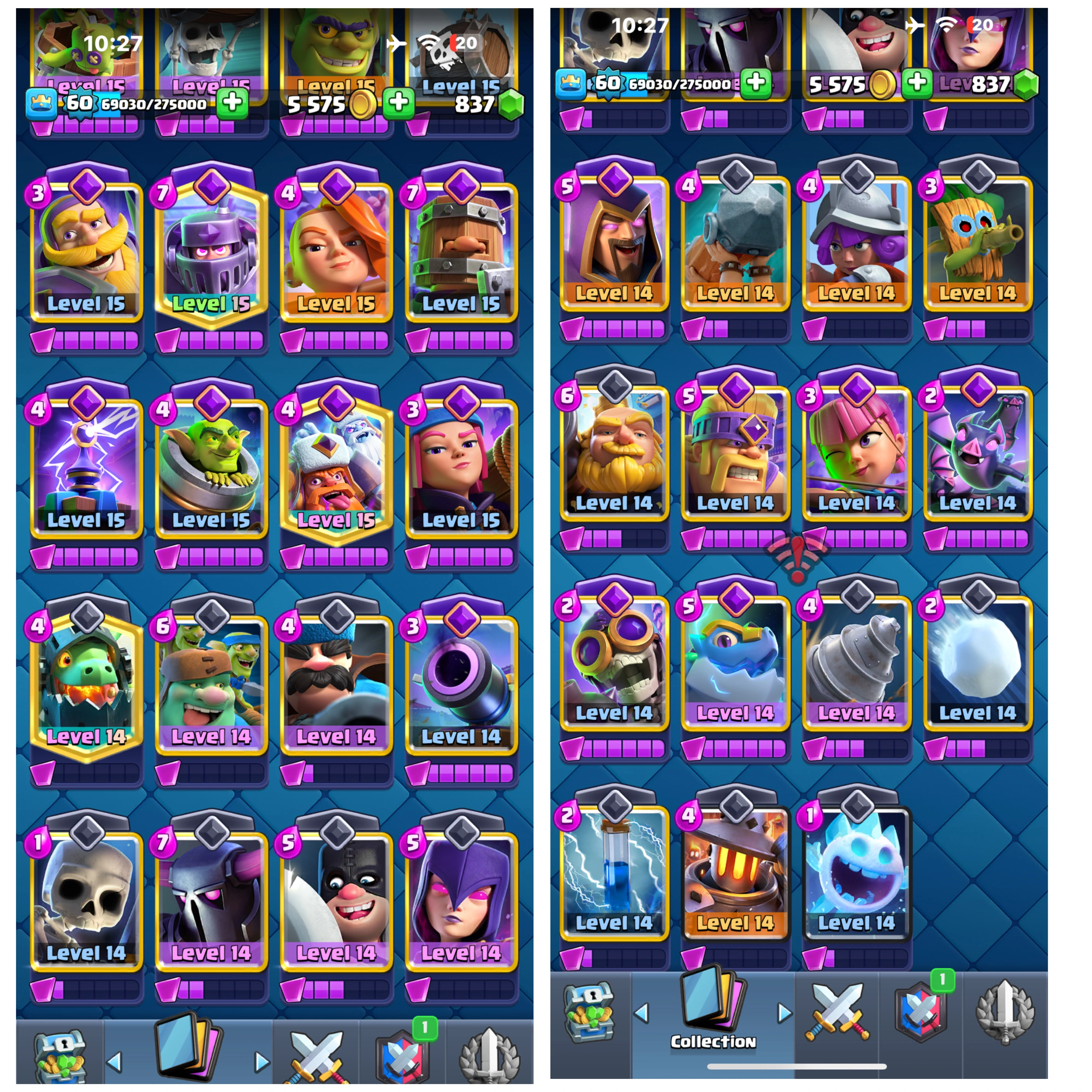 Premium KT 15 (LVL.60)✅111 CARDS MAX✅EVO-17✅EMOTES-91✅9323 TROPHY✅NC-1K✅ITEMS VERY GOOD✅6 CARDS EACH HAS 3 EVO SHARD✅ANDROID & IOS