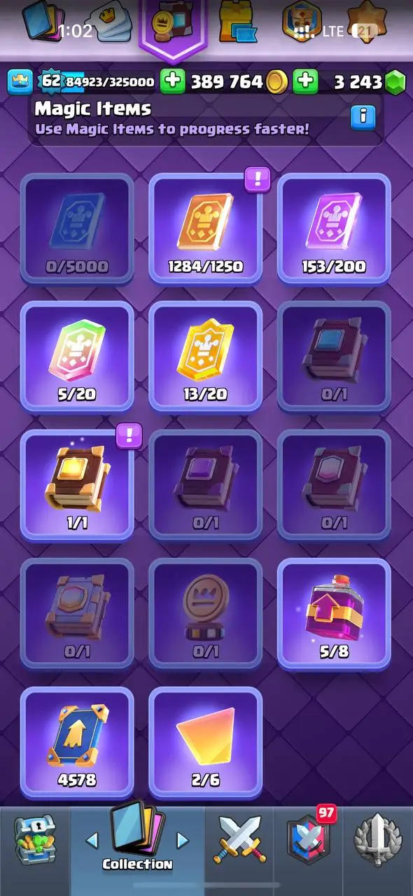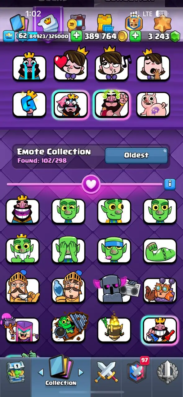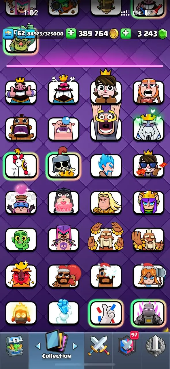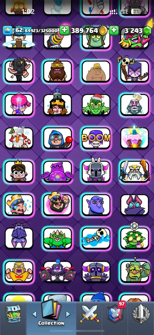 🤯 RAREST 🙀 6 digits tag 💀 62 XP 🚨 34 CARD ELITE 🥶 90 CARD MAX 👿 102 RARE EMOTE 🤩 15 EVOLUTION ☺️ 9500 TROPHIES 🏆 3500 GEM 💎 INSTANT DELIVERY 🚚