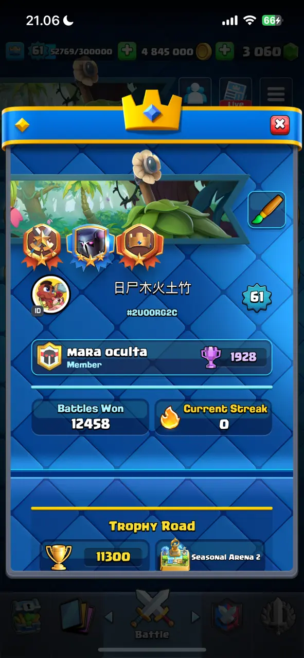 🔥 RAREST 🔥 CR Lv.61 🔥 8 Years Played 🔥 Change Name ON 🔥 Seasonal Arena 2 🔥 11300 Trophies 🔥 KT 15 🔥 18 Evo Card 🔥 108 Max Cards & 22 Elite 🔥 141 Emotes 🔥 16 Tower Skins 🔥 [F2382] 🔥