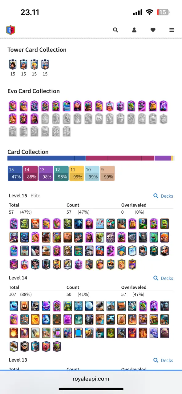 🔥 [RAREST] 🔥 CR Lv.66 🔥Seasonal Arena 2🔥11100 Trophy🔥KT 15🔥18 Evo Cards🔥107 Max Cards & 57 Elite🔥200 Emotes🔥13 Tower Skins🔥Full Acces & Guaranteed🔥[F2186]🔥