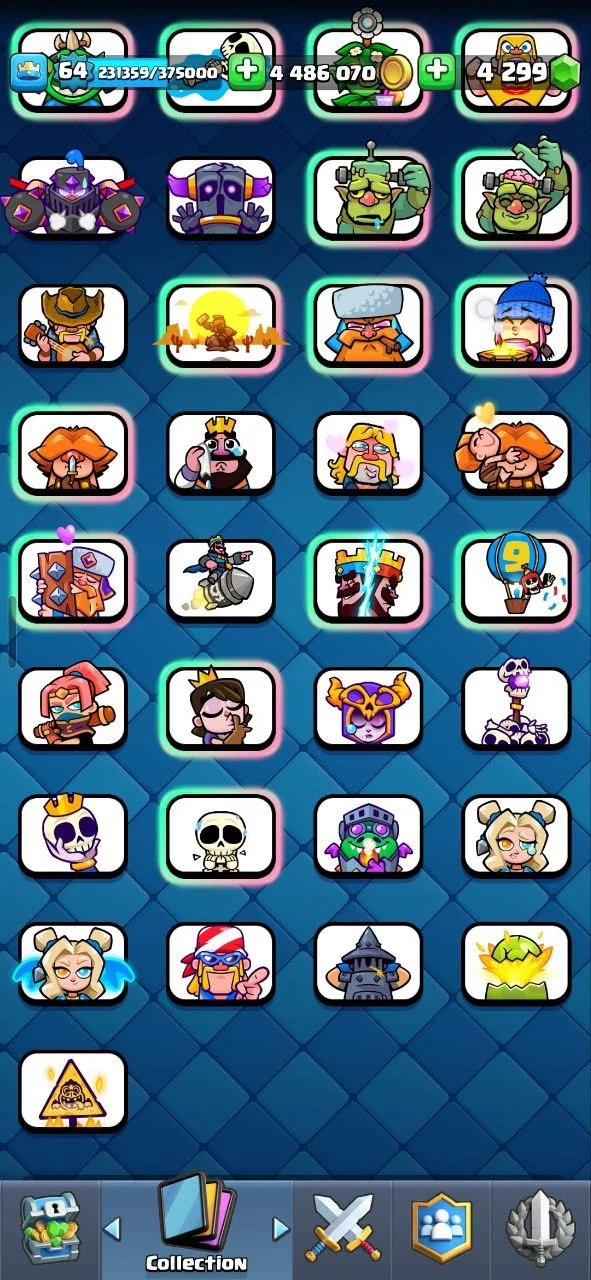 ✨️ (RAREST EMOTES) ❄️ FULLY MAXED 💎 S1 FIGHTING FISH 🐟 CRYING GHOST 👻 RAINBOW PRINCE 🌈 ANNIVERSARY HEALER 🎂 CHRISTMAS HOG 🎄 MAGIC ARCHER 🏹 64 XP 🎯 ULTIMATE CHAMPION 💪 11000 TROPHIES 🏆 44 ELITE CARDS 🐉 14 EVOLUTIONS 😈 20 TOWER SKINS 🔥