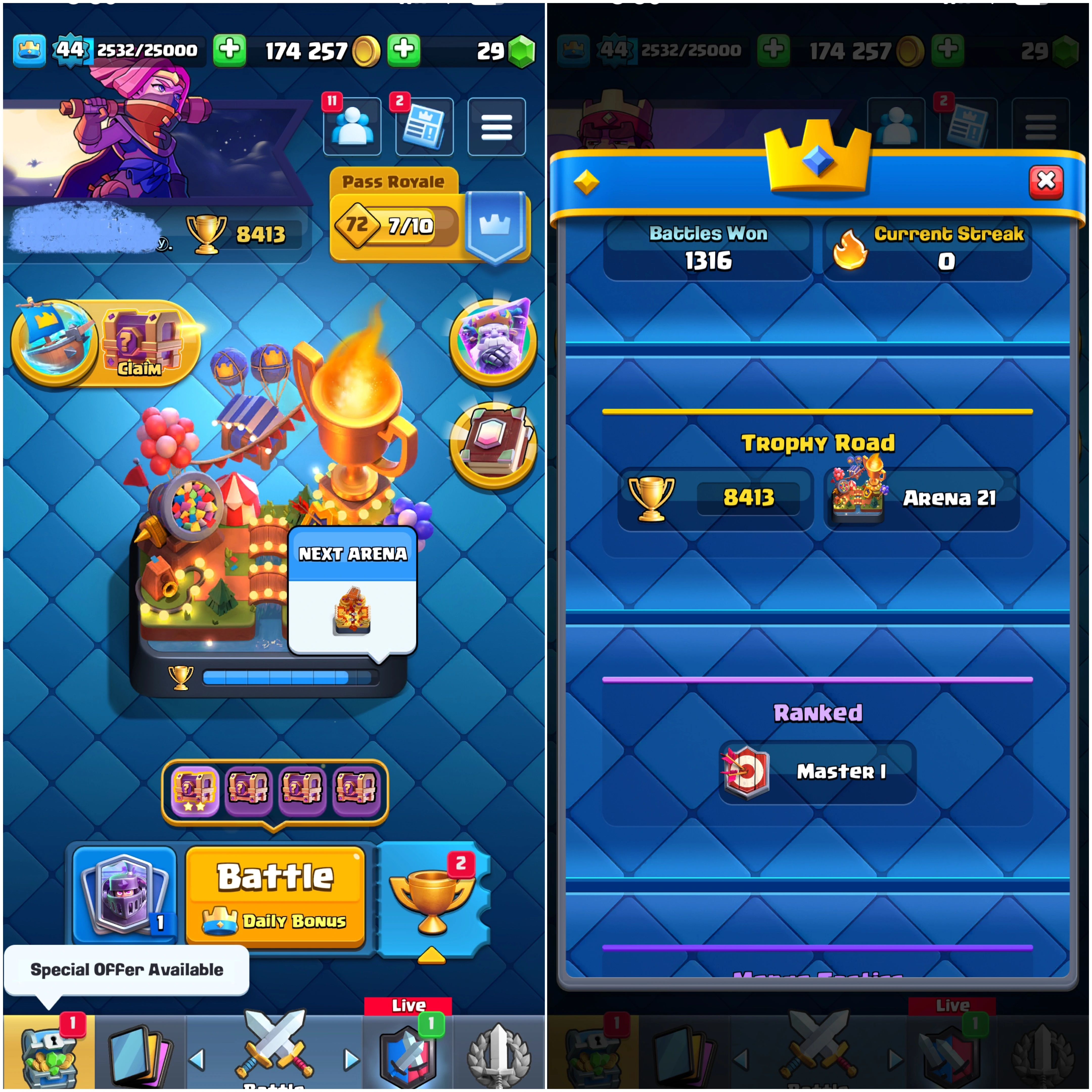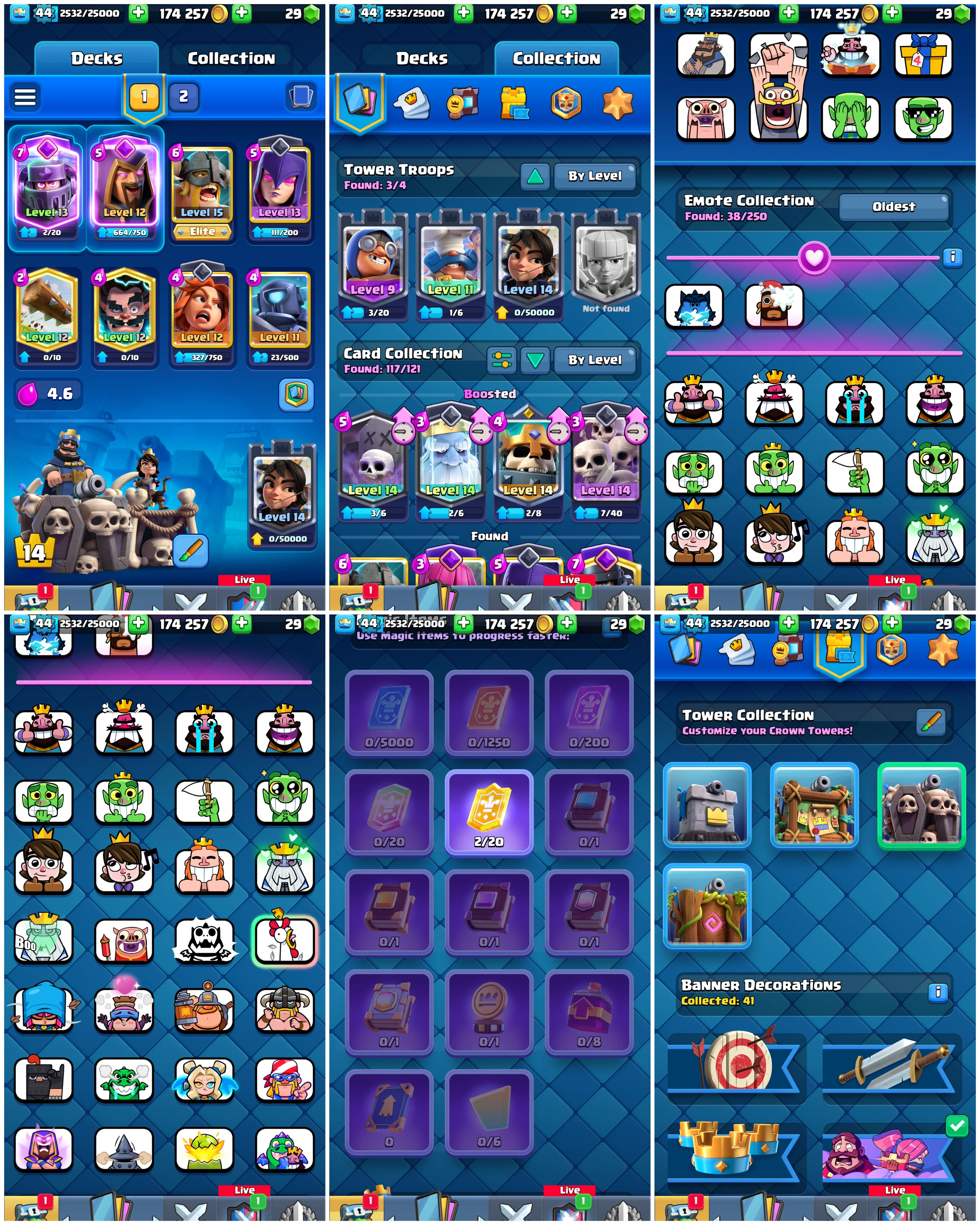 🚨 Urgent Sale 🌟 8413 Trophies 🏆| Level 44 🔥 | King Tower 14 👑 | Arena 21 ⚔️ | Emote 38 😎 Cards 117 🚀 Instant Delivery 🚀 Lifetime Access ✅ | #P744