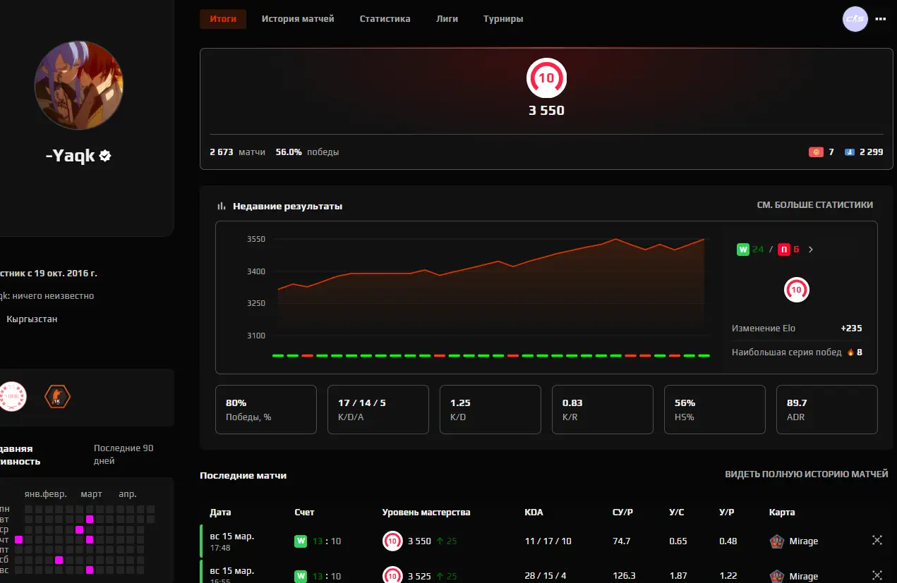 FACEIT 10 LVL HLTV PROFILE 3550 ELO, 2666 MATCHES 2016 REG VERIF NATIVE MAIL 12 MEDALS