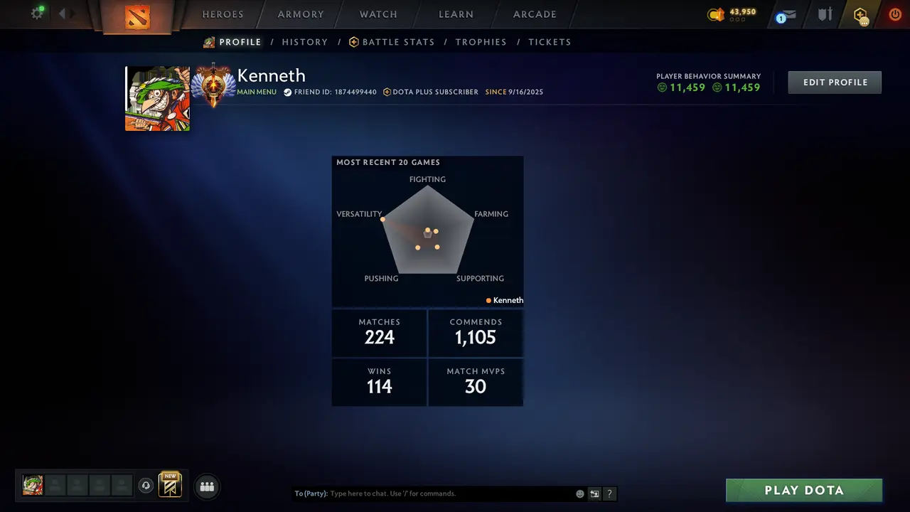 #BB1775 Immortal 6186 MMR+62 LVL TROPHY+224 matches+11459 behavior