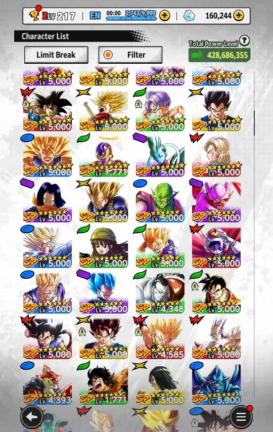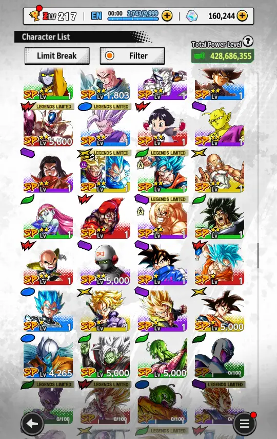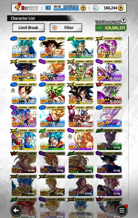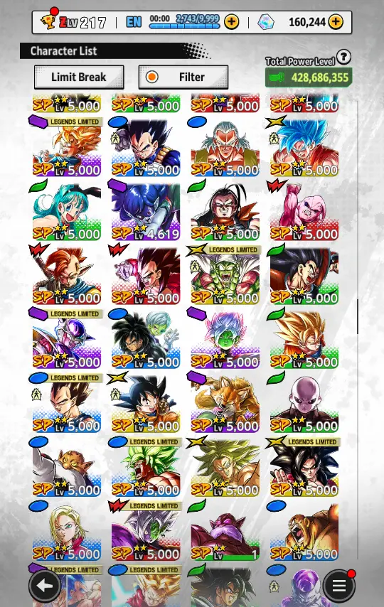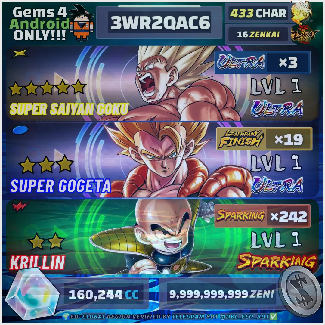 👑 WHALE Legends Collection: [📱 Platform: Android, 👤 Characters: 433, 🌟 Ultra: 3, ⚔️ Sparking: 242, 💎 Crystals: 160244, 👑 Limited: 19, ⚡ Zenkai: 16] ⸱ PREMIUM COLLECTION | GUARANTEED SAFE !AGG148