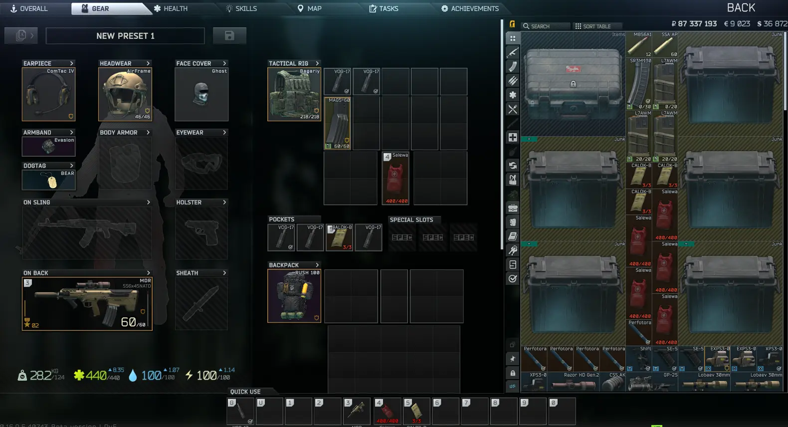 EU | Escape From Tarkov | Edge of Darkness | Stash Value ⸱ 150,766,832 Roubles | Balance 87,337,193 rub. | 36,872 dollar | 9,023 Euro