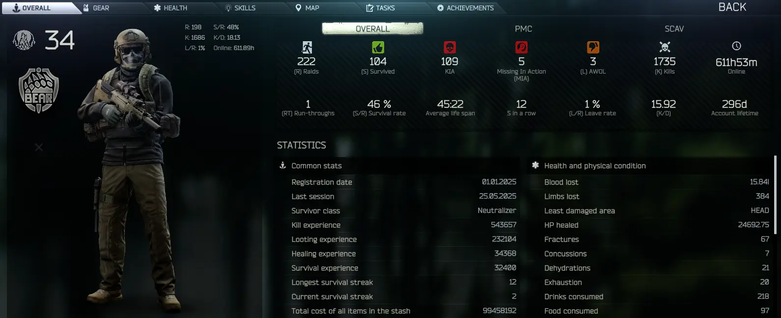 EU | Escape From Tarkov | Edge of Darkness | Stash Value ⸱ 99,458,192 | Balance ⸱ 23,994,911 rubles