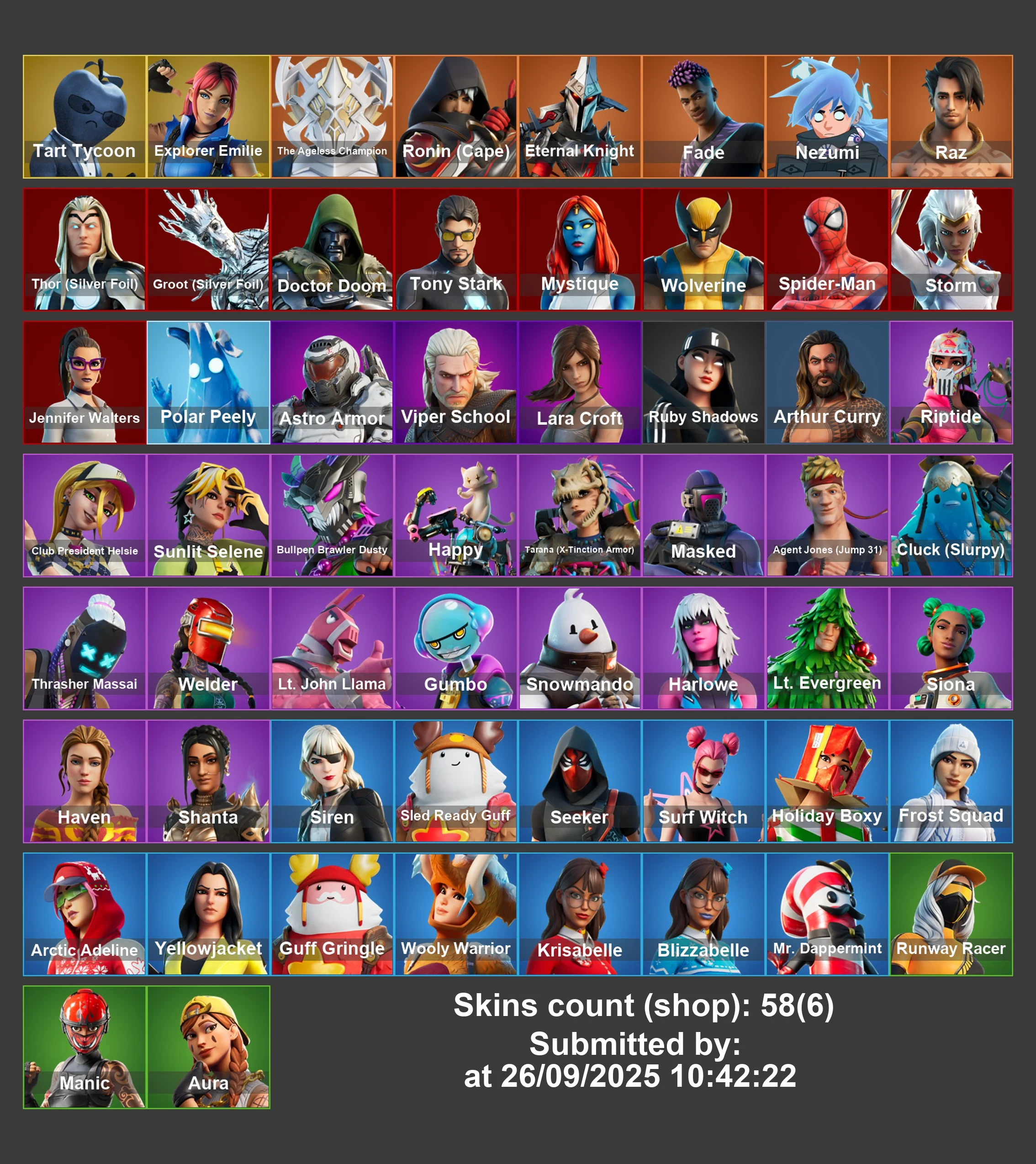 🔥100$ spent [PC] 58 skins | Tart Tycoon | Explorer Emilie | The Ageless Champion | Ronin (Cape) | Eternal Knight | mssh290