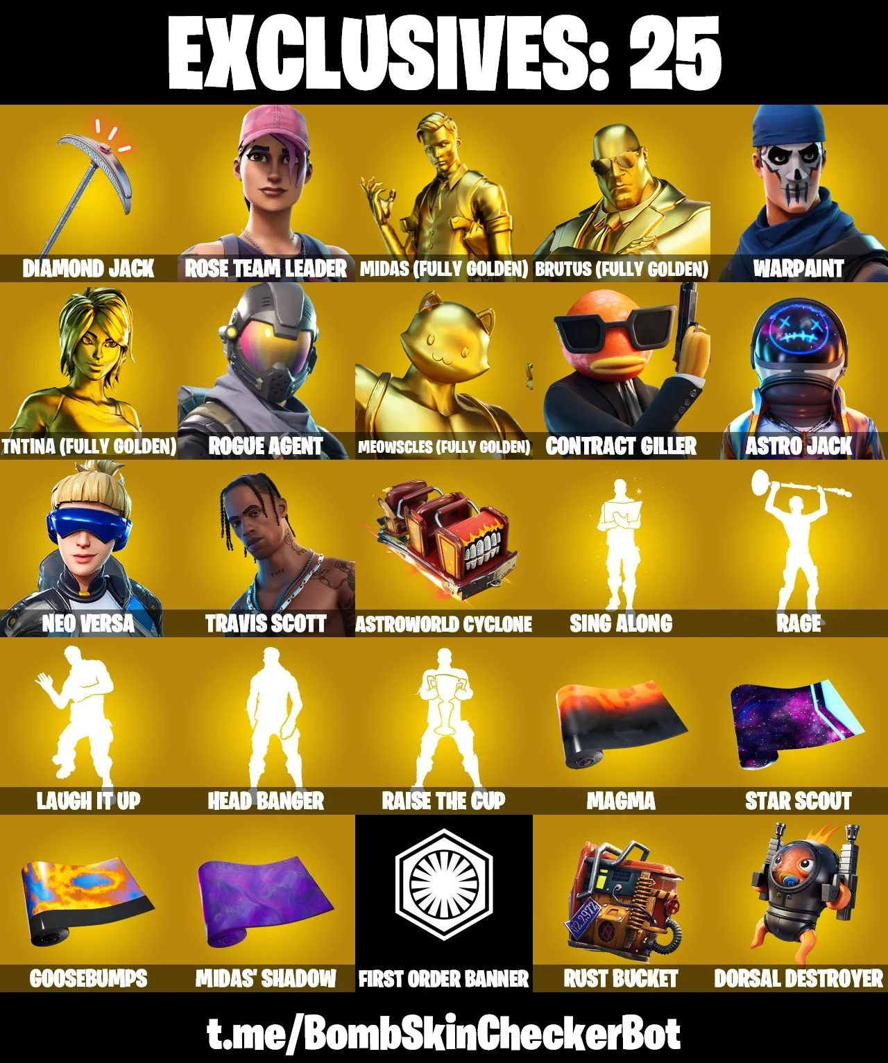 [ 114 SKINS】 TRAVIS SCOTT ❤️ GOLD MIDAS ❤️ GOLD BRUTUS ❤️ ASTROWORLD CYCLONE ❤️ (PC/PSN/XBOX)