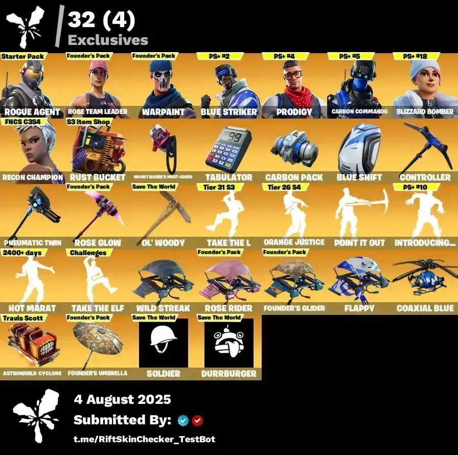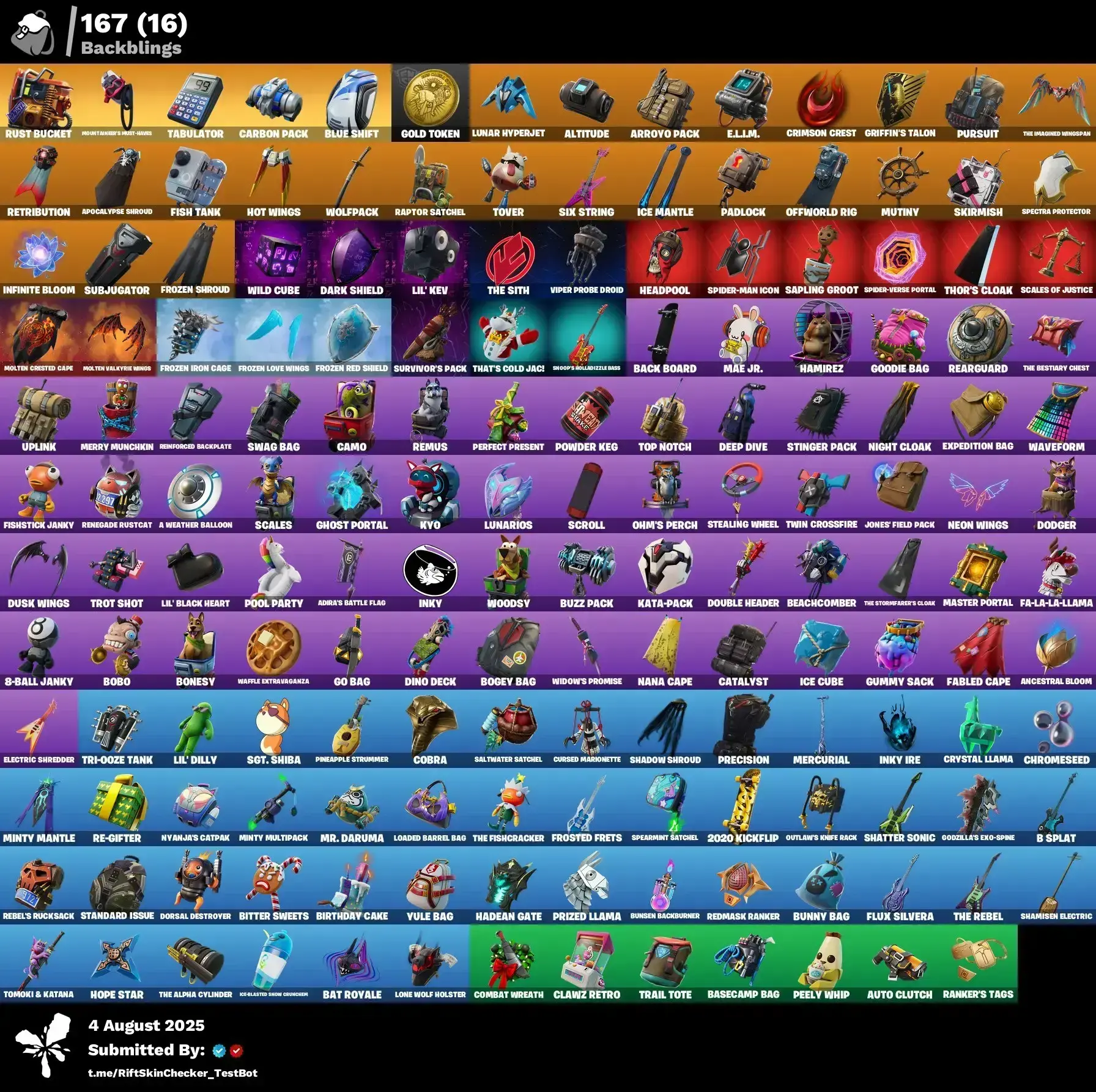 139 SKINS | TAKE THE L | OG STW FOUNDERS | BACKLASH | SKULL TROOPER | OMEGA | SPIDER-MAN MILES MORALES | SPIDER-MAN NO WAY HOME | MANDALORIAN | DARTH VADER | NARUTO | ORANGE JUSTICE | HUMAN BILL | KAWS SKELETON | TSUKI 2.0 | ZOEY
