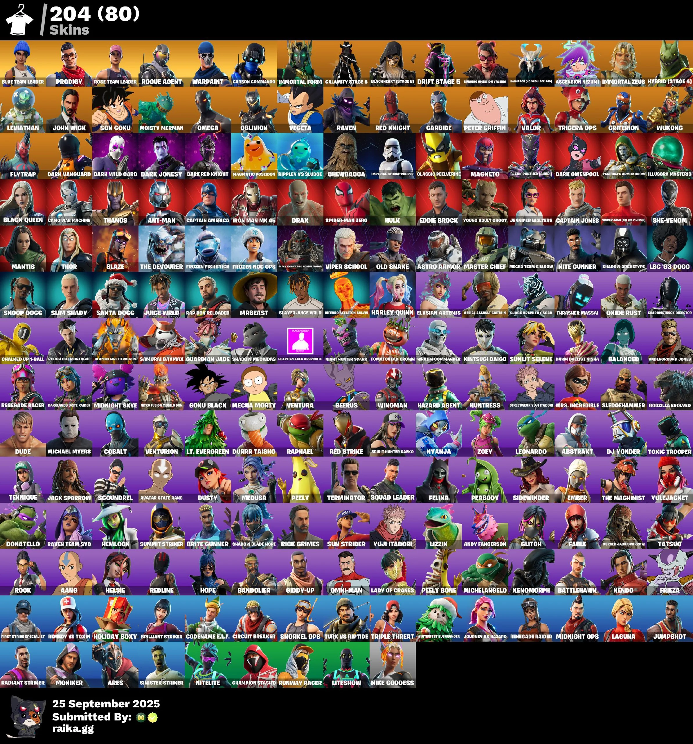 🔥2200$ spent [PC/PSN/XBOX/NINTENDO] 204 skins | OG STW | Master Chief | Harley Quinn | Raven | Peely | Omega | Harley Hitter | Son Goku mssh353