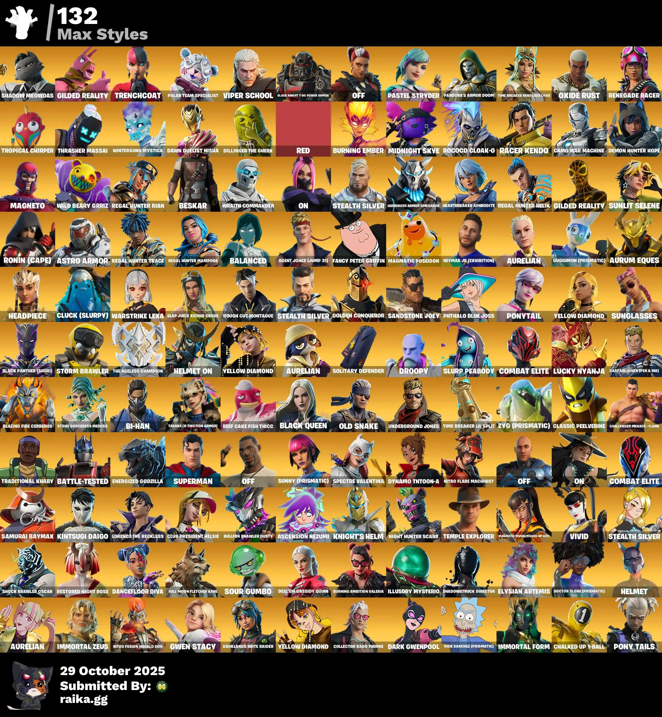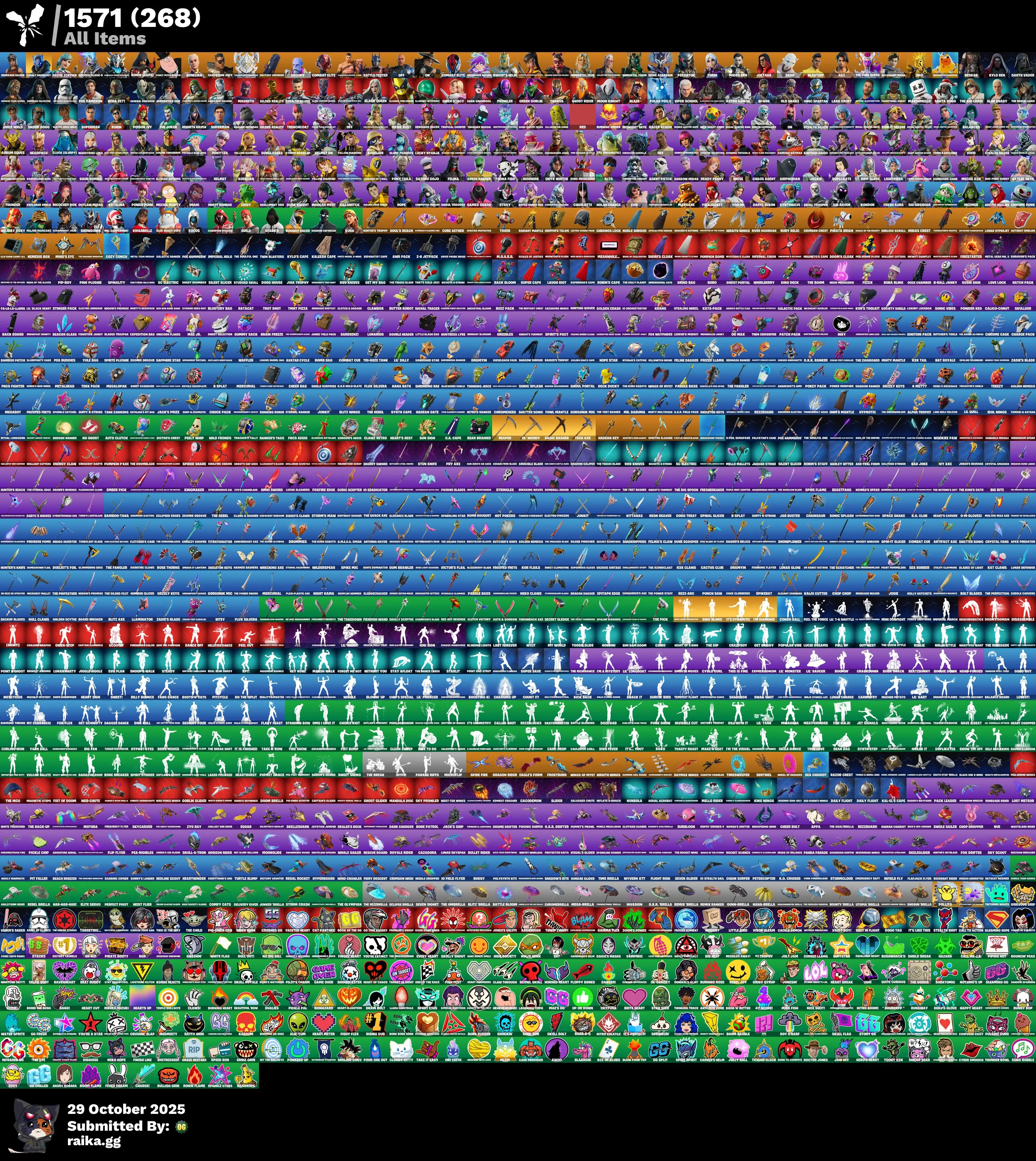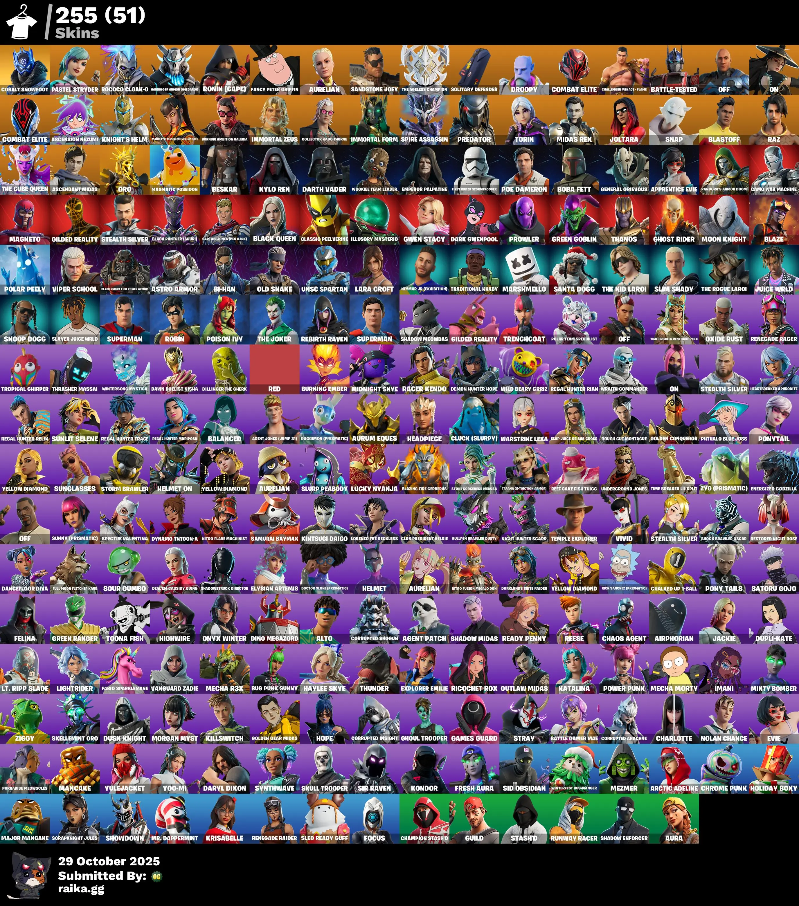 255 skins | Satoru Gojo🎃Get Griddy🎃Spider-Man🎃Lara Croft🎃Spider-Gwen🎃Daryl Dixon🎃General Grievous🎃Appa🎃Swag Shot🎃Avatar's Flourish🎃Doom's Domain🎃Lil' T-6 Shuttle🎃Pitcycle🎃Wiggle🎃Arm the Pumpkin!🎃Do the 'Split🎃Gwen-Step D5267
