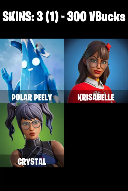 3 SKINS 🔥 Polar Peely | Krisabelle | Crystal | Clawz Retro | Holo-Boot Pack | Lunar Hyperjet | Apocalypse Shroud | Spectra Protector | Cozy Conch | Scales of Justice | Legend's Modkit | Fishstick Janky | Twin Crossfire