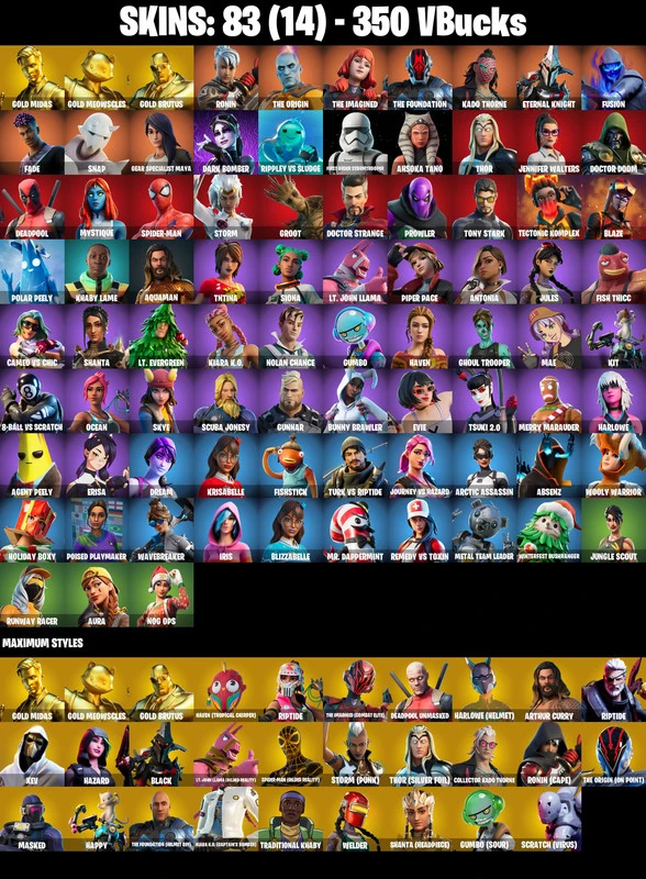 83 SKINS 🔥 Candy Axe | Get Griddy | Ghoul Trooper | Jules | Deadpool | Reaper | Mystique | Aura | Gold Midas | Gold Meowscles | Gold Brutus | Ronin | The Origin | The Imagined | The Foundation | Kado Thorne | Eternal Knight | Fusion | Fade