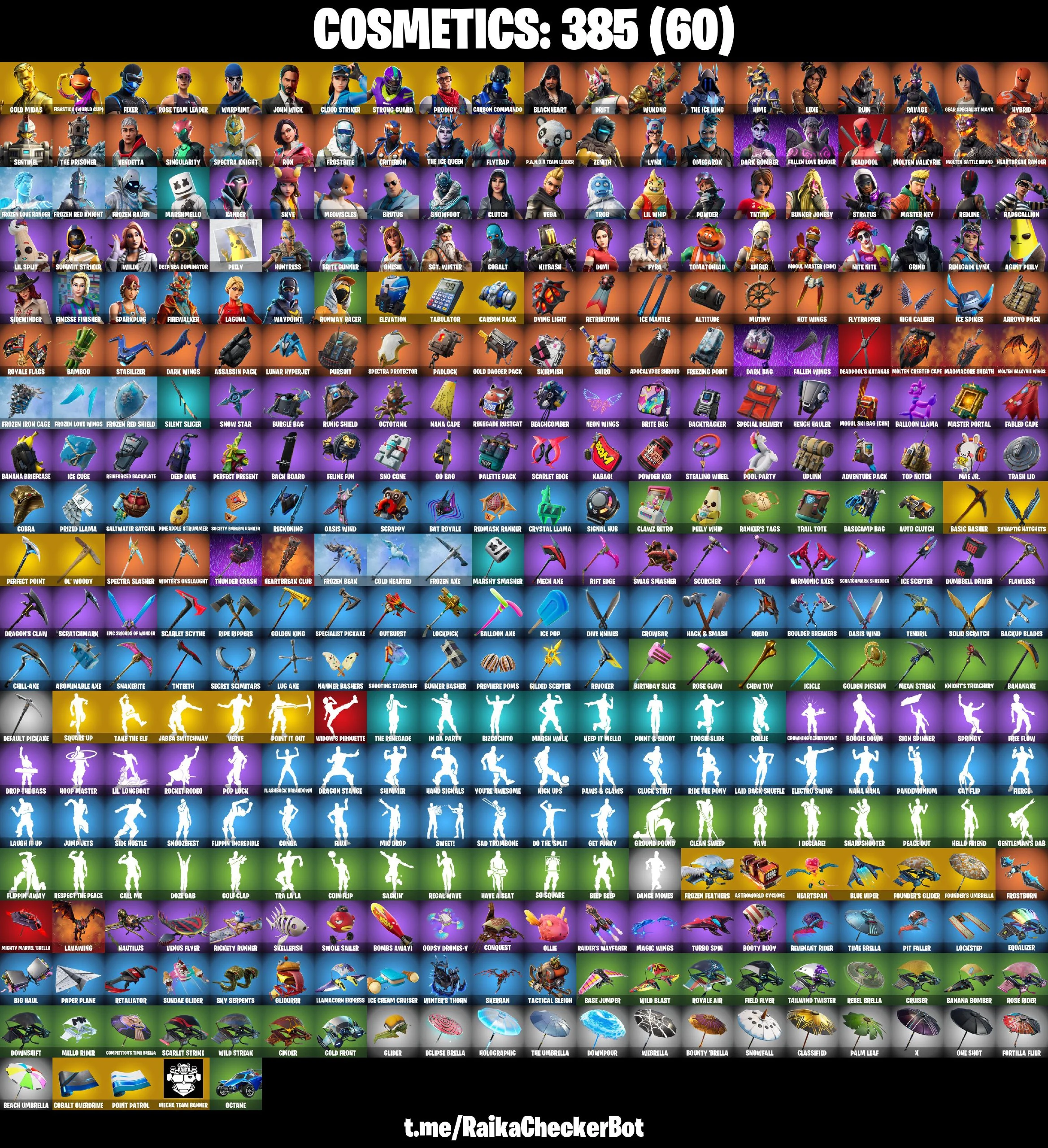 87 SKINS | OG STW | Fishstick (World Cup) | John Wick | Crowbar | Take The Elf | Marshmello | Peely | [PC] | 0 VB