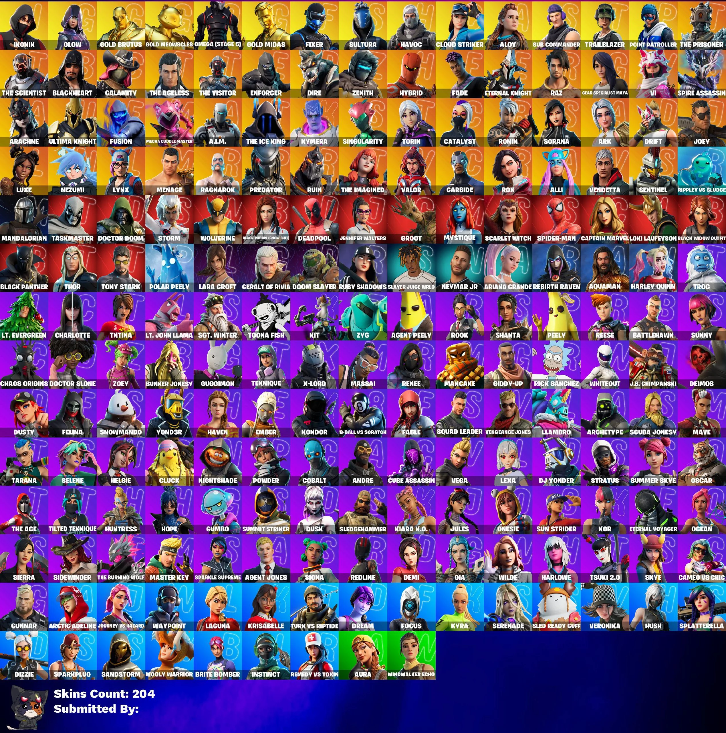 ๐ฅ๐ EXCLUSIVE OFFER ๐๐ฅ 204 SKINS ๐ IKONIK ๐ GLOW ๐ GOLD BRUTUS ๐ GOLD MEOWSCLES ๐ OMEGA (STAGE 5) ๐ GOLD MIDAS ๐ FIXER ๐ SULTURA ๐ HAVOC ๐ CLOUD STRIKER ๐ ALOY ๐ SUB COMMANDER ๐ TRAILBLAZER ๐ SCENARIO ๐ ELEVATION ๐ 50 VB ๐ FULL ACCESS ๐