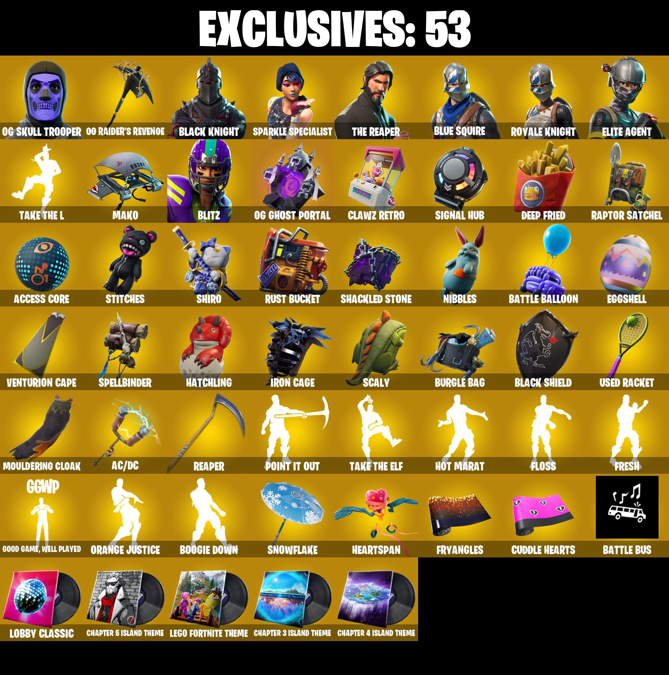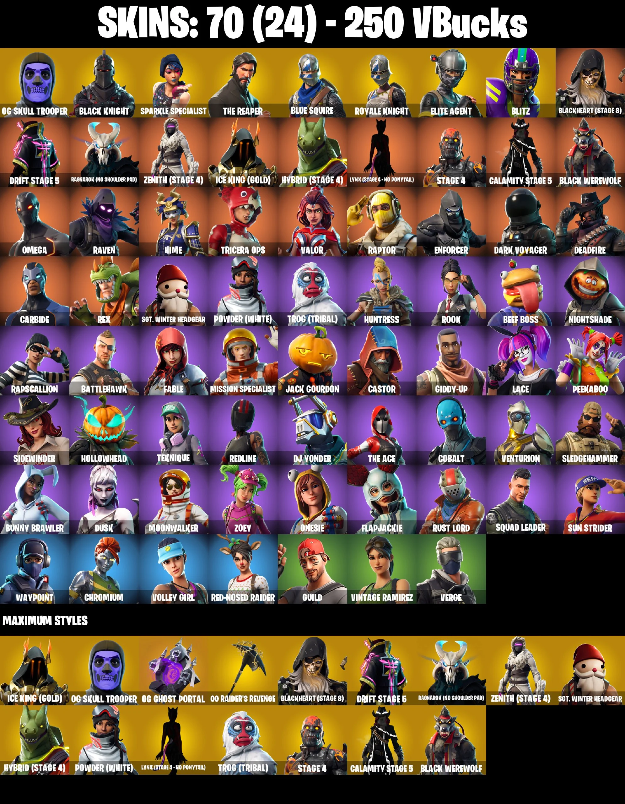 💥🌟💥 EXCLUSIVE OFFER 💥🌟💥 70 SKINS 💎 OG SKULL TROOPER 💎 BLACK KNIGHT 💎 RAIDER’S REVENGE 💎 THE REAPER 💎 FRESH 💎 ROYALE KNIGHT 💎 ELITE AGENT 💎 CROWBAR 💎 Reaper 💎FULL ACCESS 🎮 PSN / XBOX / PC