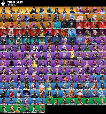 F743 // An account with 809 skins // 70% a lot of skins, pickaxes, hang and emotes, exclusives