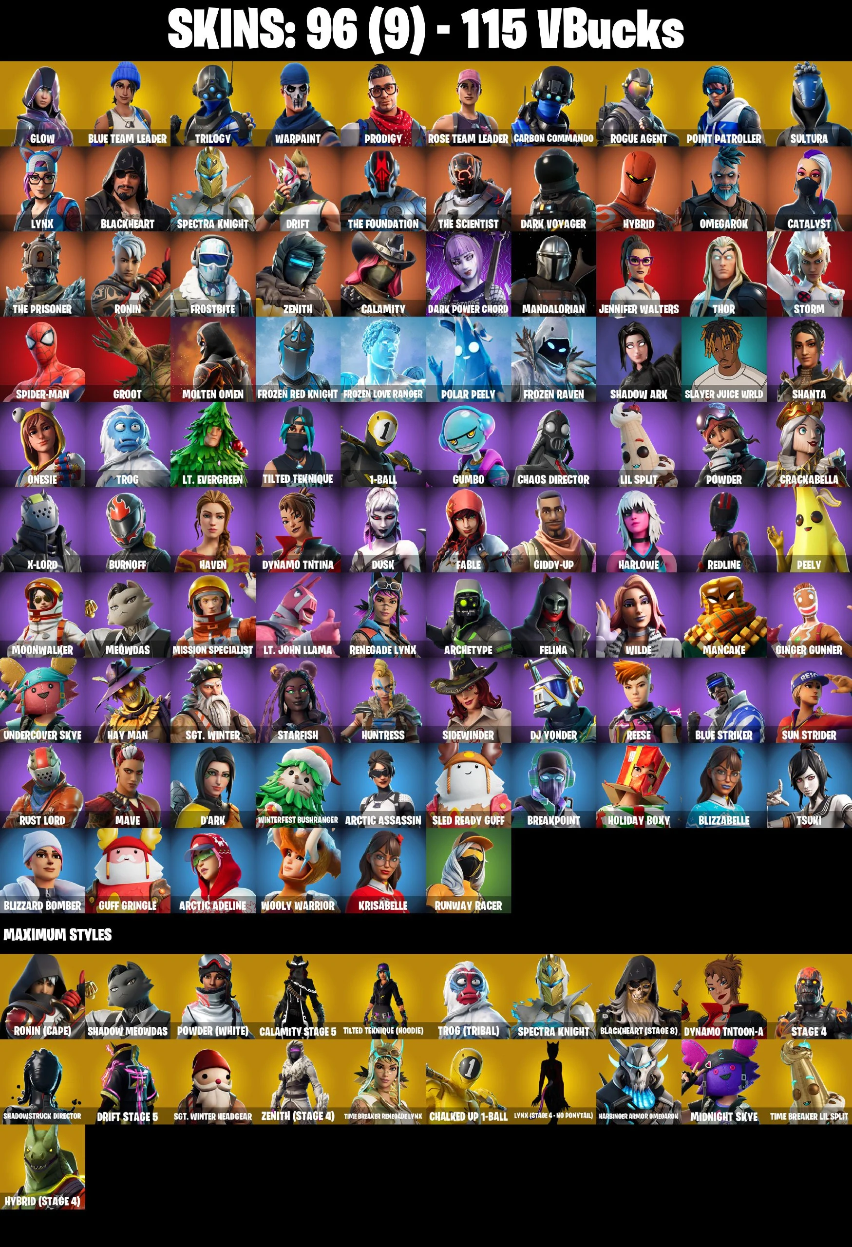 (PC) 115 VB) 96 SKINS / GLOW / BLUE TEAM LEADER / TRILOGY / PRODIGY / CARBON COMMANDO / ROGUE AGENT / POINT PATROLLER / SULTURA / LYNX /